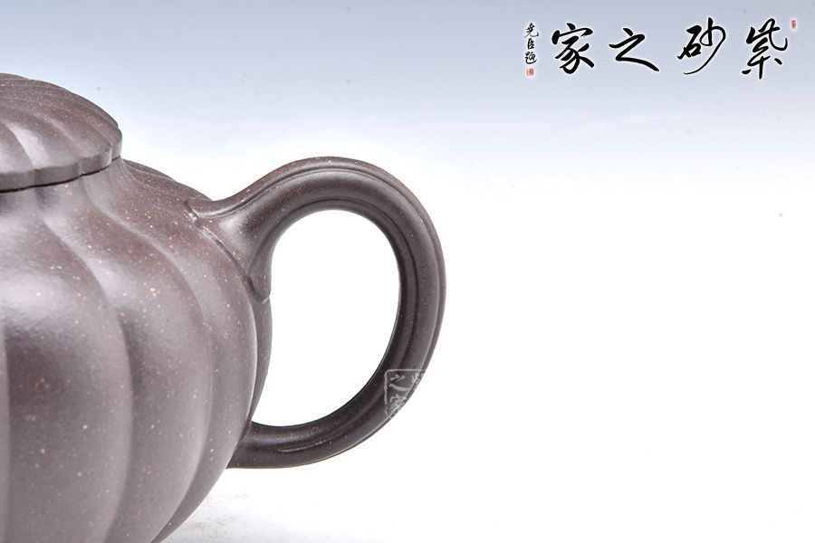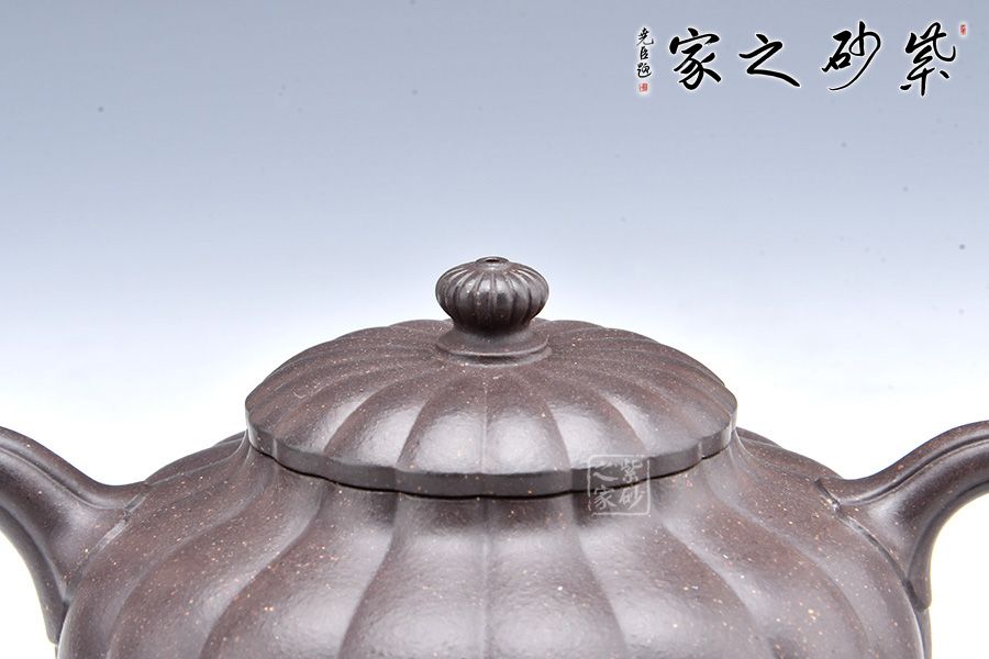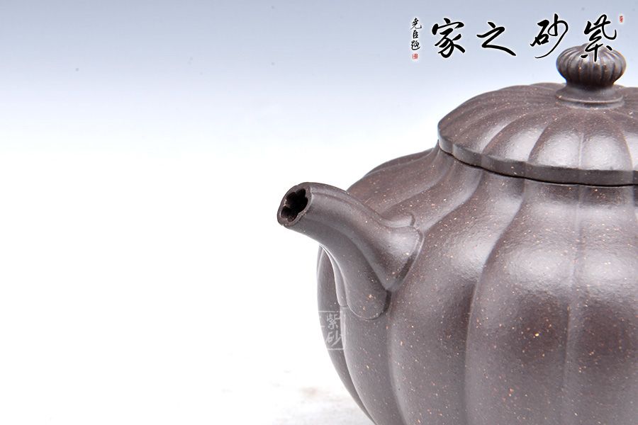 菊蕾筋紋器是一種制作難度比較大的工藝,不但要求制作的花瓣清晰可見,且要做到均等分配。 此壺形象逼真、構(gòu)思新穎、做工精湛。像一朵含苞待放的菊花花蕾,喻意生機盎然。又加入筋紋造型增加了制作難度,是一把使用、把玩、欣賞皆宜的佳作。