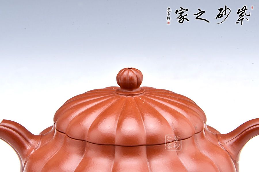 此壺為筋紋器,壺身等比例分割為多瓣菊蕾,熱烈盛放,彰顯秋日最后的那抹鮮亮生機(jī)。壺腹寬和飽滿(mǎn),身上筋紋凹凸有致,正若菊瓣自然舒展之形,貼切入微。壺底加足,足的筋紋與壺身筋紋暗合,渾然一體。壺口縮攏,平蓋壓身,蓋上筋紋與壺身吻合,線條流暢;壺蓋制作規(guī)整,六瓣隨意扣壓均可與壺口精美吻合,整壺氣密性佳。俯視此壺,層層菊蕾依次綻放,美韻非凡!