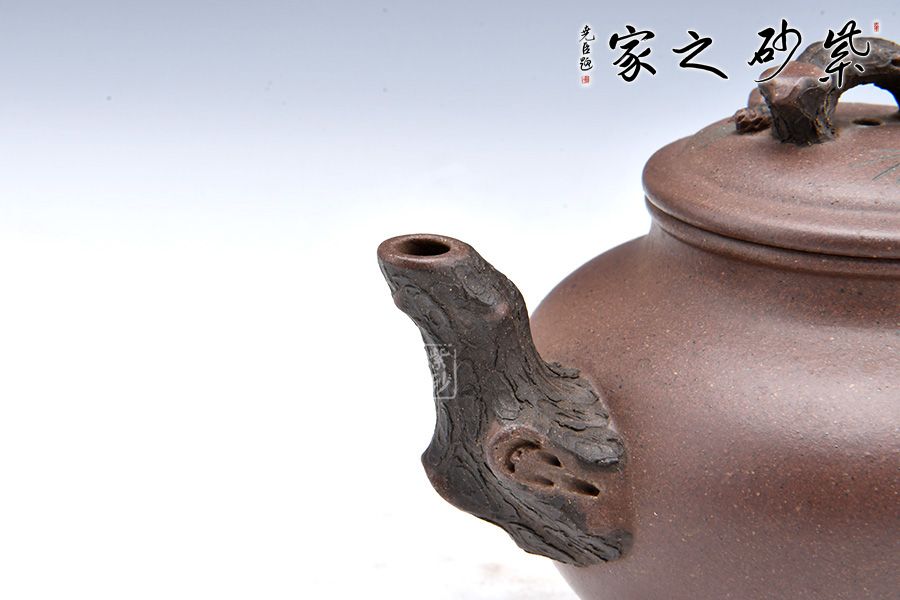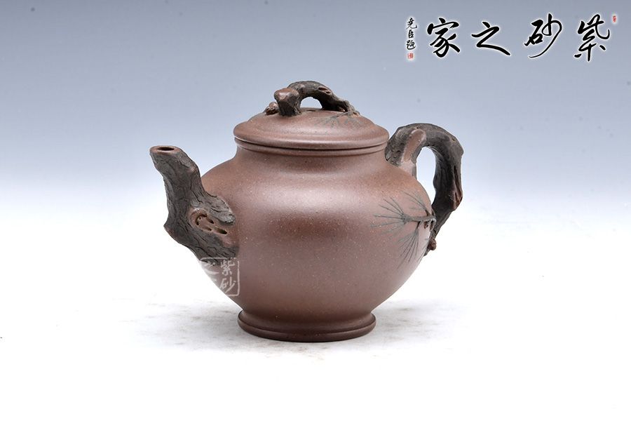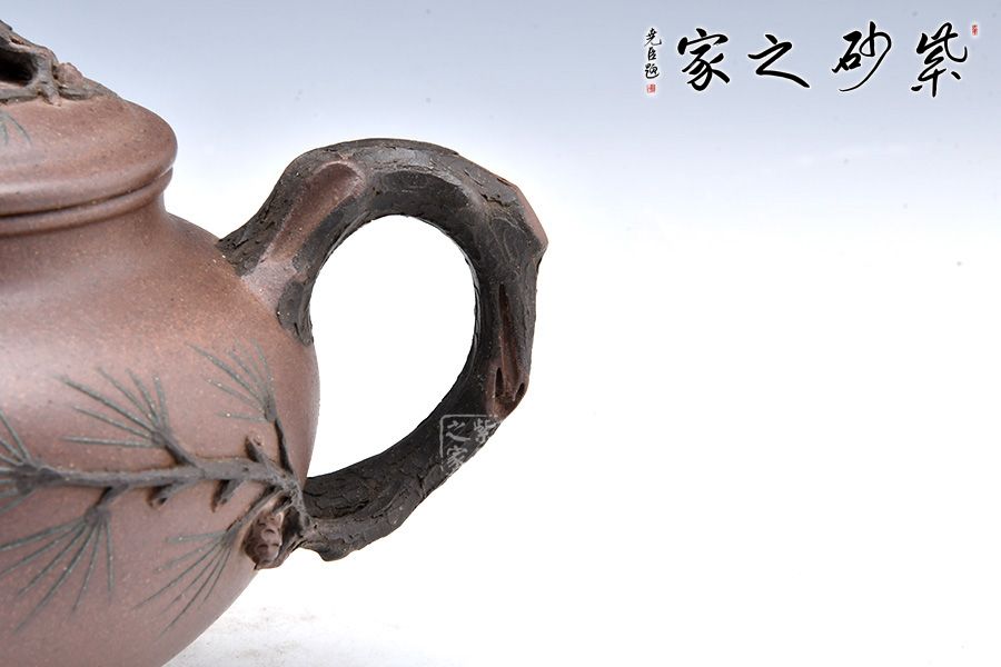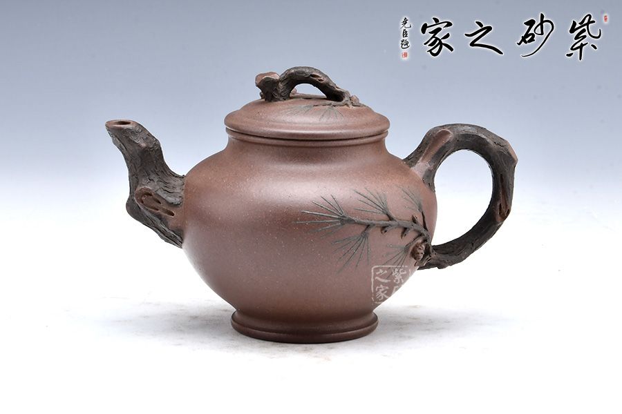 松報春壺以松為造型裝飾的壺體,壺身為圓形,壺鈕、壺把、壺嘴以樹木枝干為形,壺身上又作松針、松果等造型的雕塑,來顯示報春壺的表現形態(tài),代表萬物復蘇,生機盎然的春天美景。因此,報春壺受到文人雅士的喜愛。 報春壺首創(chuàng)于紫砂大師朱可心,造型簡樸渾厚、裝飾以簡托繁,一直受到人們的喜愛。