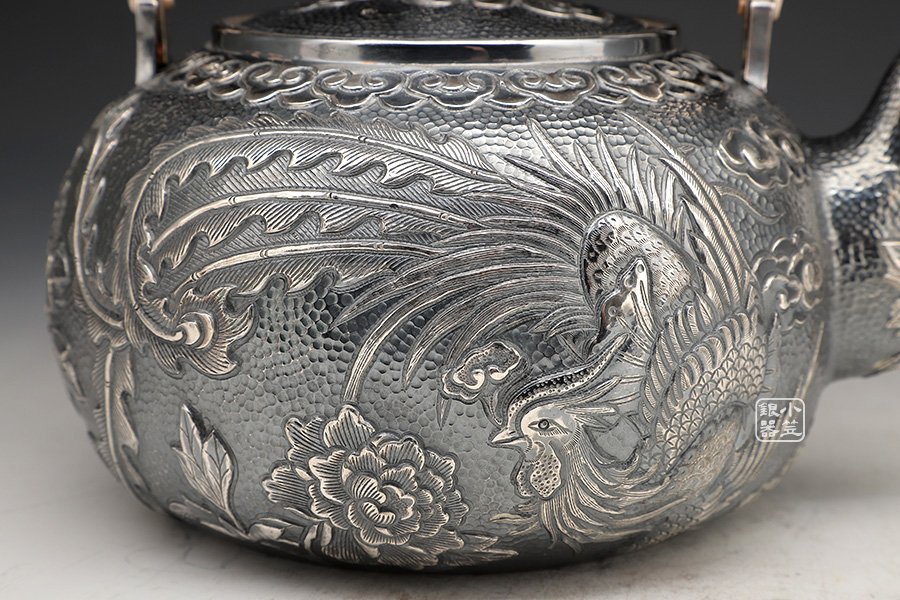 鳳穿牡丹鏨刻銀壺 [ 編號:140304 ]