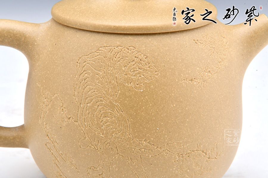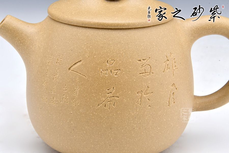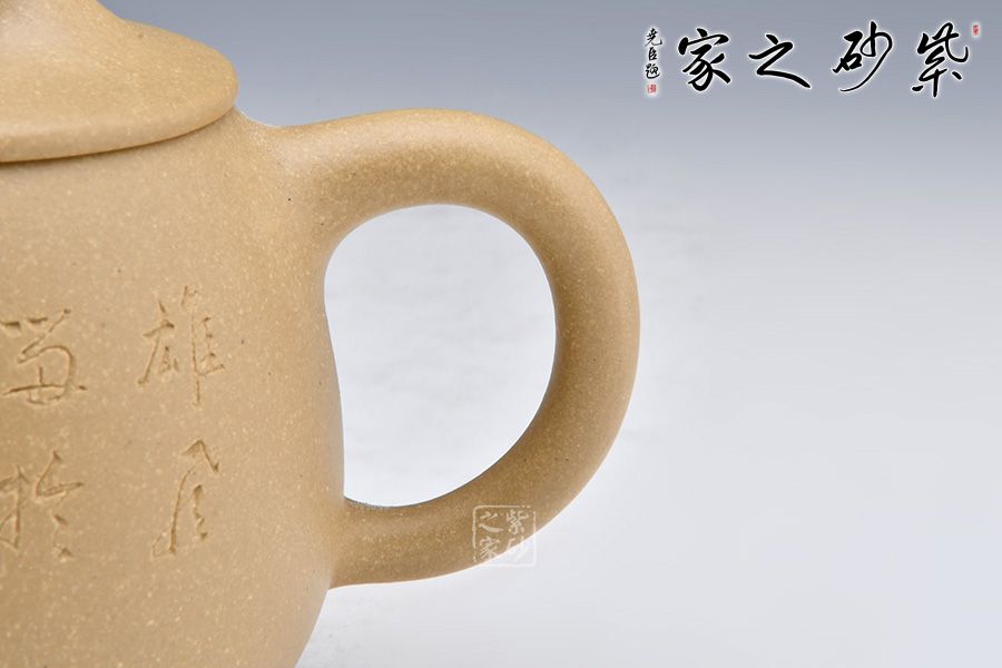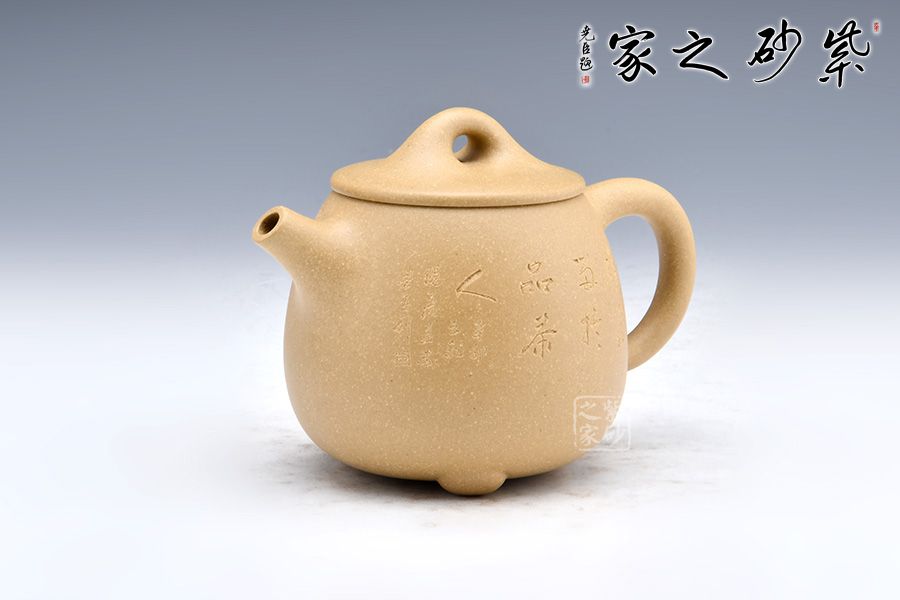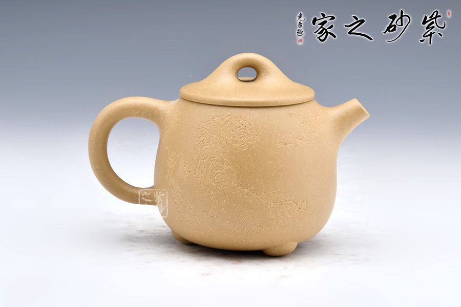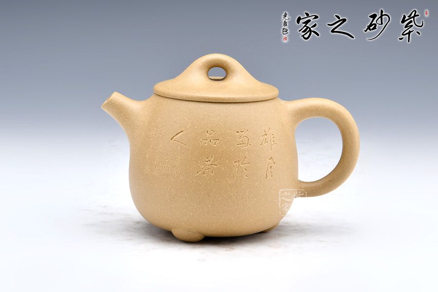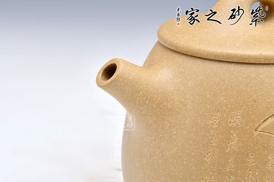 此款高石瓢與經(jīng)典石瓢有異曲同工之妙,此款壺身較高,壺口較寬,本山綠泥制作,泥質(zhì)溫和,壺身上窄下寬弧度變化不大,壺嘴直長,近似圈把的造型與整體協(xié)調(diào),三乳足壺底穩(wěn)穩(wěn)撐起壺身,整體給人輕靈而穩(wěn)重的感覺。加之刻繪裝飾,顯得整器典雅大方,推薦!