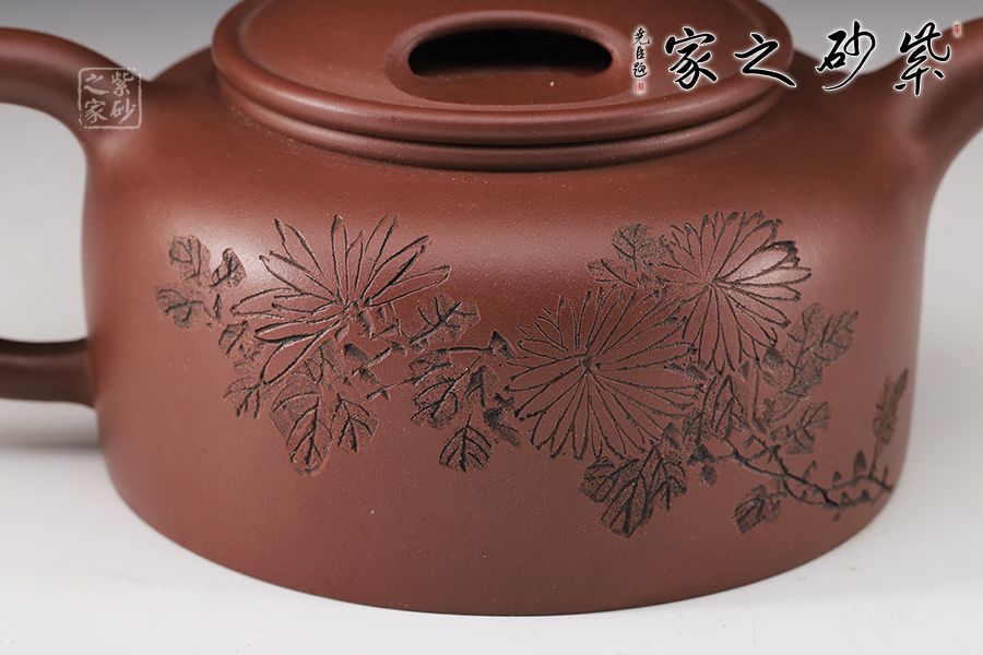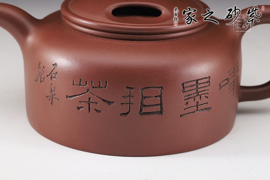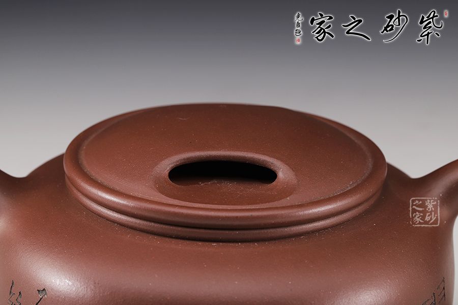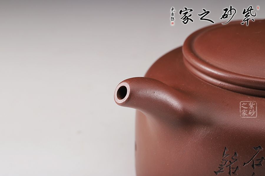 此壺牛蓋制作大氣磅礴 壺嘴挺拔有張力 跟壺把遙相呼應 壺身線條柔中帶剛 剛中帶柔 刻繪蒼勁有力 揮灑自如 難得的佳品