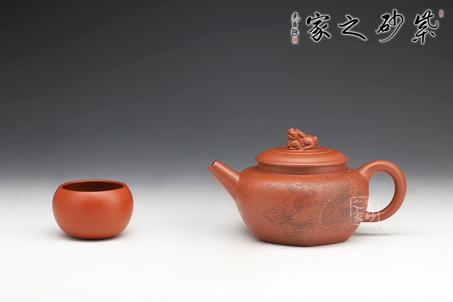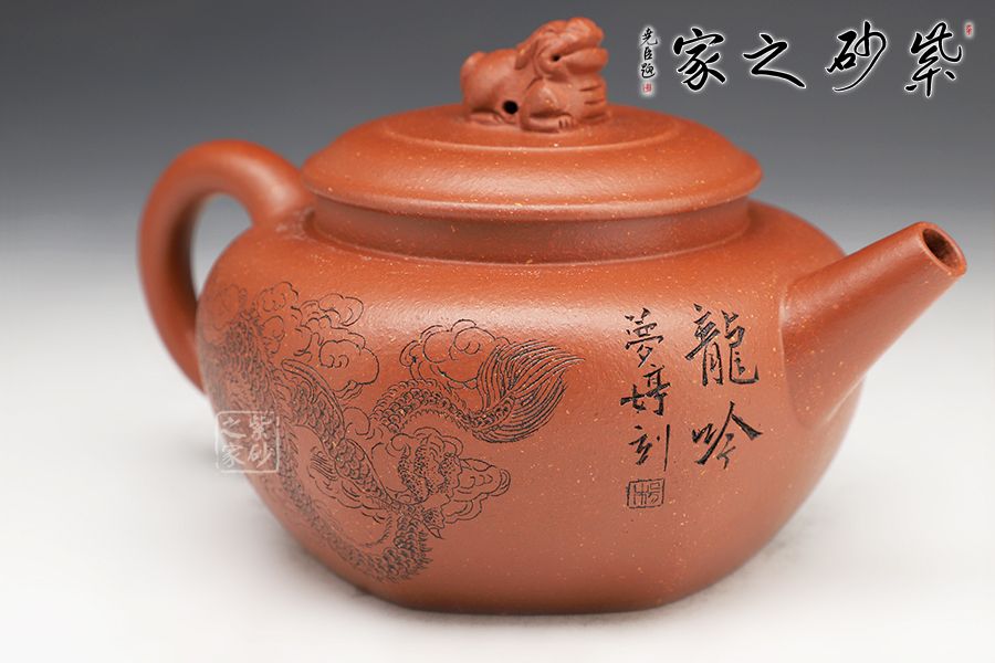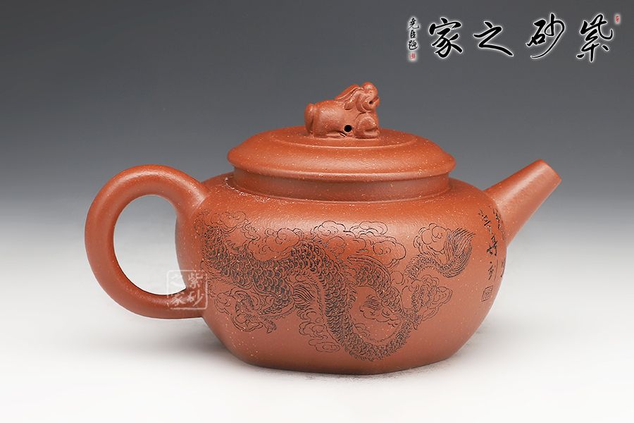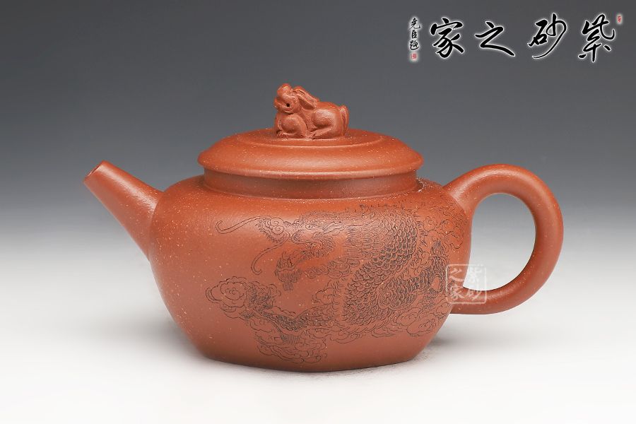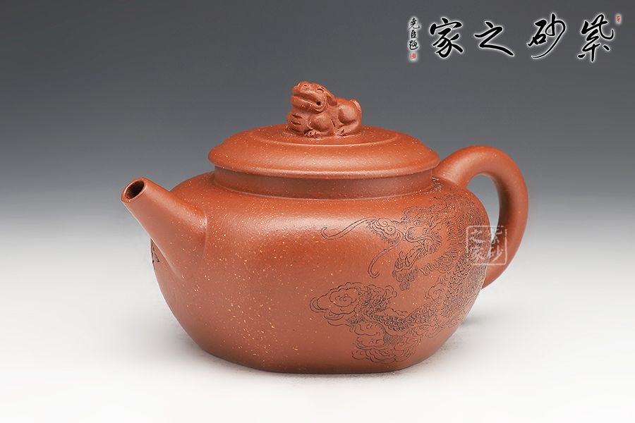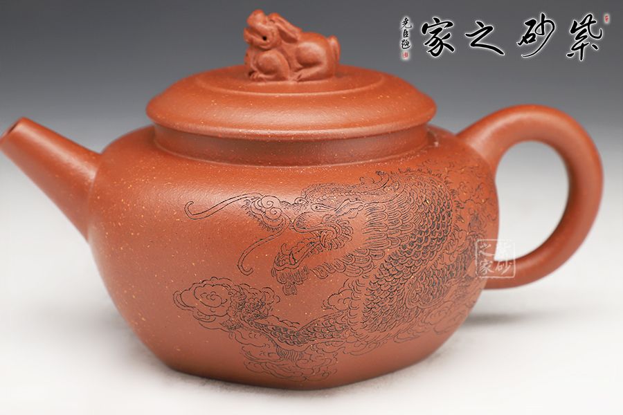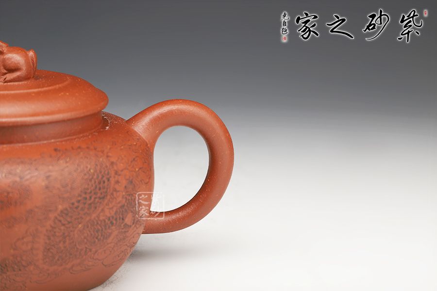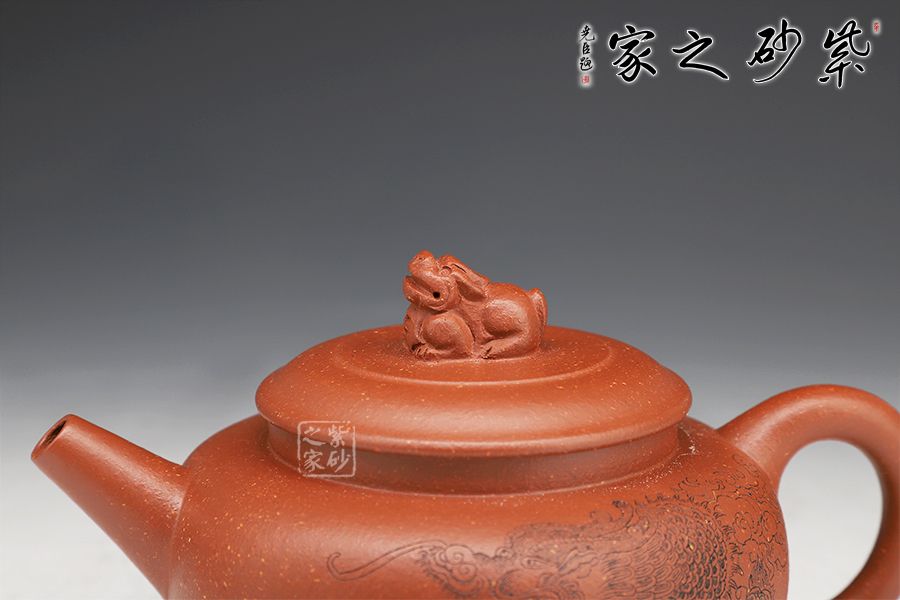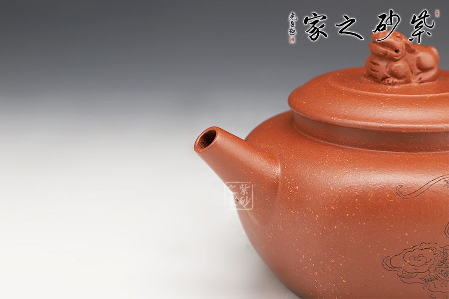 這款壺是六方和傳統(tǒng)壺器的結(jié)合,造型沉穩(wěn)內(nèi)斂,亦體現(xiàn)了古樸的風(fēng)韻,造型神形流韻盡顯貴態(tài),若以此壺品茗,妙不可言!此壺整器渾圓飽滿,福氣滿乾坤,有如一股內(nèi)氣通透;壺流、壺把、壺鈕與整體協(xié)調(diào)一致,甚是和諧。降坡泥,滿佈五彩斑斕的粗細、深淺之紅、黃星斑點。