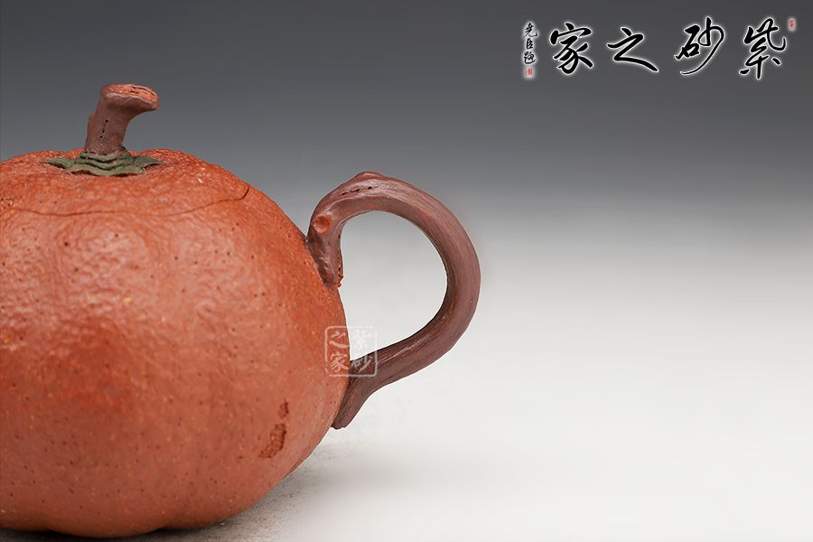 這是一款筋紋器,以南瓜為形制成,整款壺采用南瓜造型,壺身為扁圓形,自壺口到壺底形成微向內(nèi)凹陷的筋紋弧度,給人以挺括豐腴的感受;底部的弧線陰影也巧妙地形成勾勒的效果,甚是精妙;扁圓壺身上長(zhǎng)瓜蒂壺鈕為壺更添精神,耳形端把暗接精湛,虬曲有勁,端握溫和稱手。