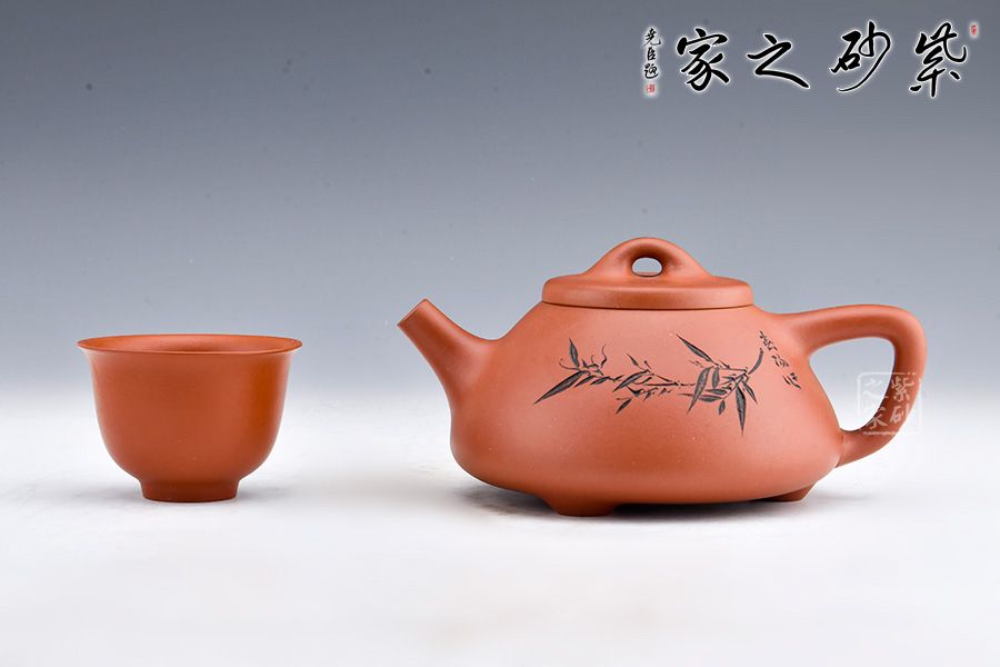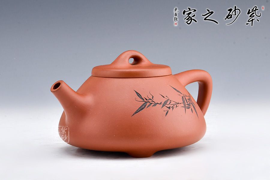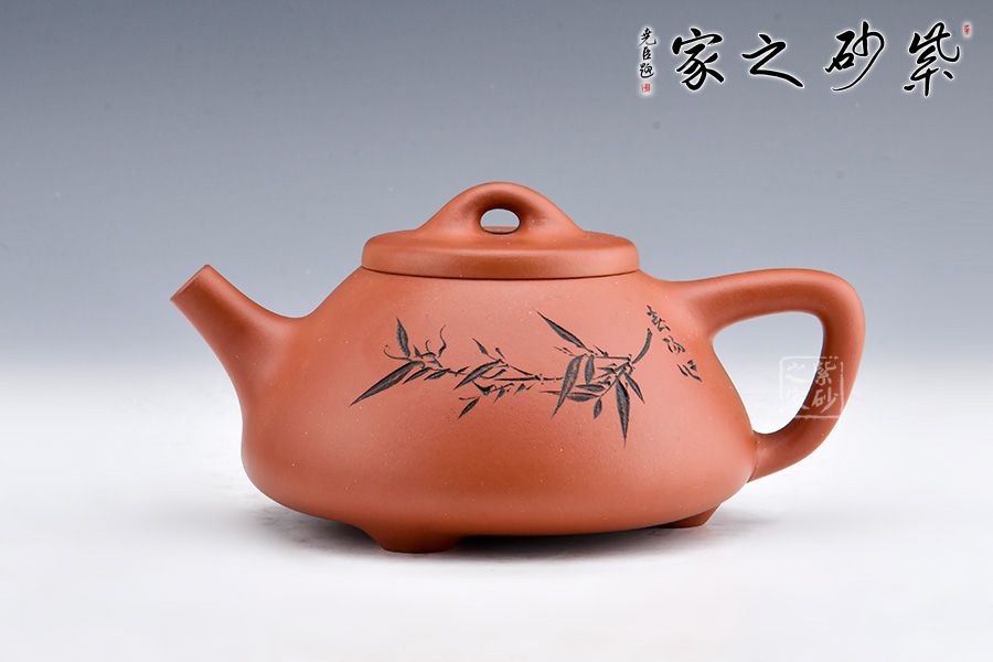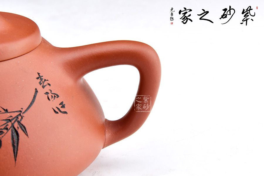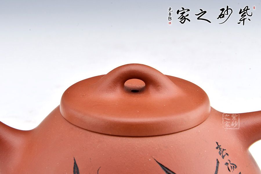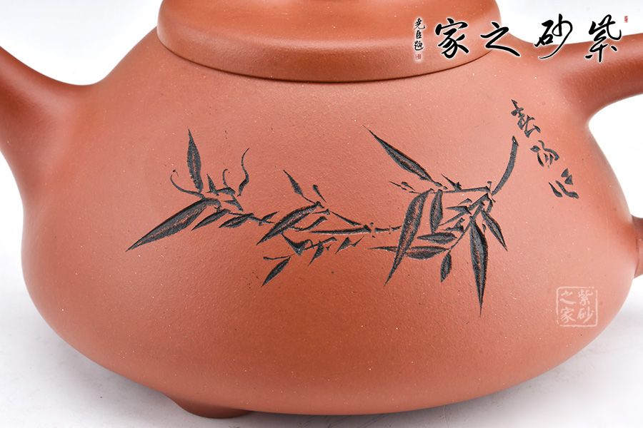 這款壺器造型含蓋多種三角形,是一種形狀與平面的結(jié)合的美,整體壺型敦厚穩(wěn)實(shí),質(zhì)樸舒雅。壺鈕壓蓋極低,更見淳樸穩(wěn)重,壺嘴、壺身、 壺把比例協(xié)調(diào)。此壺壺身裝飾為素刻枝葉,清逸高潔,寓意深刻。整器氣韻挺拔精神,刻繪簡(jiǎn)約優(yōu)雅,其制工非常優(yōu)異扎實(shí),細(xì)節(jié)處游刃有余,張弛有度,宜茶宜玩宜賞,更宜收藏。
