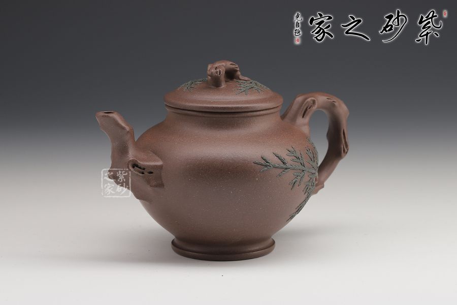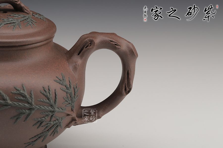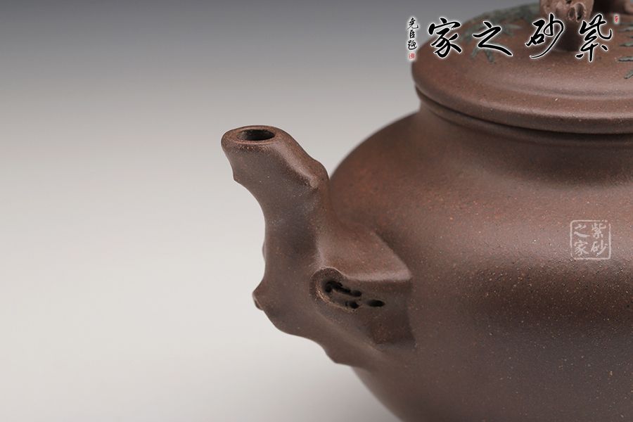 妙不可思。工藝的精雕細(xì)鏤,使壺的造型更加生動(dòng)、形象、活潑,傳統(tǒng)的紫砂壺在許紅娟老師的手里變成了有生命力的雕塑藝術(shù)品,充滿(mǎn)了生氣與活動(dòng)。整器的色澤,沉著而沒(méi)有火氣;仔細(xì)觀察,又如光映射,宛若珠璣,更為奪目。壺身保持自然原色,質(zhì)樸渾厚,古雅可愛(ài)。
