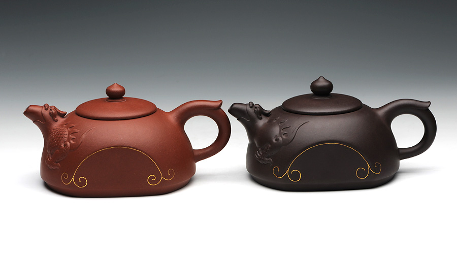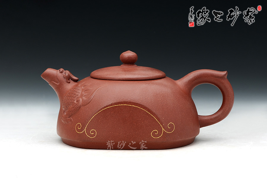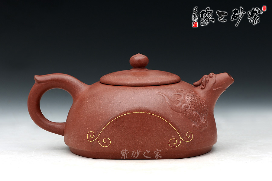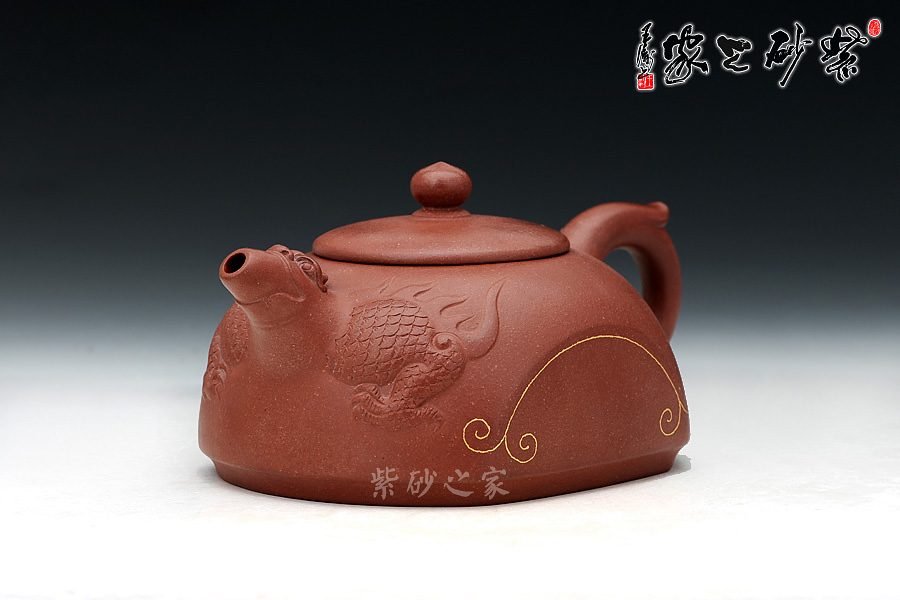 王濤老師作品歷來立意新穎,此款作品的靈感來源于龍生九子的一個民間傳說,傳達更多的中國傳統(tǒng)文化。選用清水泥泥料,氣韻優(yōu)雅,壺體的特別之處在于壺身正反面對應各缺一半圓,而壺本身亦為一半圓器型,飛把、壺鈕與壺嘴三點一線,壺身是龍生九子的老六蚣蝮(拼音:gōng fù),蚣蝮,又名避水獸,水性非常好,常雕刻與橋墩上,能鎮(zhèn)住河水,保四方平安。神橋壺,壺身似橋,又假借蚣蝮之意,寓意是逢兇化吉,遇到難題難事能搭橋渡過去,壺身選用99.99%純金裝飾,適合自藏和饋贈親友,推薦!
