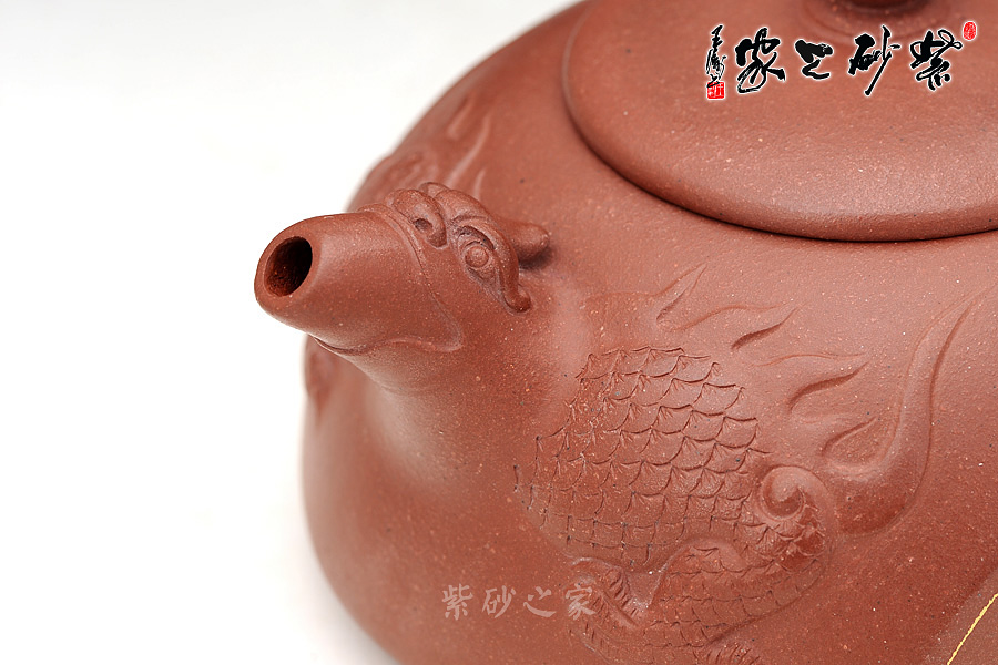 壺嘴部分有雙龍滕飛之勢,龍紋刻繪精致逼真,龍鱗龍爪皆精細至極,宛若欲騰空而起,威武不凡。