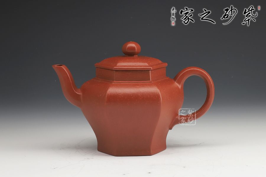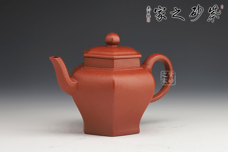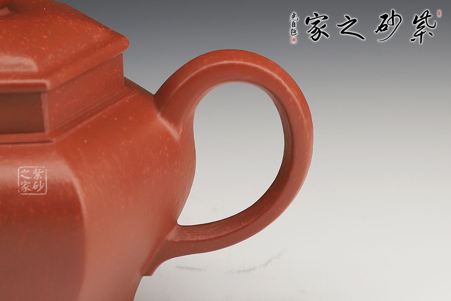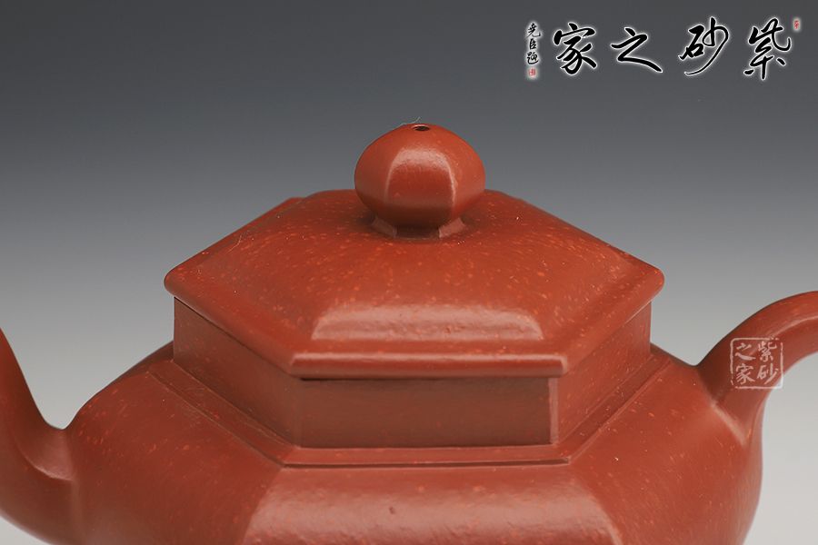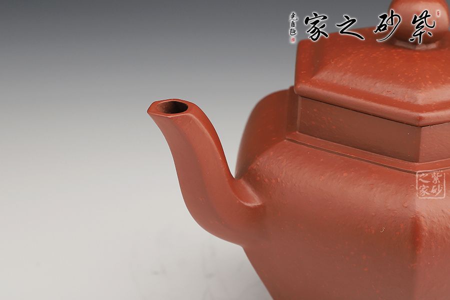壺身由六面組合而成,肩高、腹鼓、腰部內(nèi)斂,平底穩(wěn)健,高挺有力。壺蓋、壺鈕皆呈六方之形,遙相呼應(yīng),形神契合。