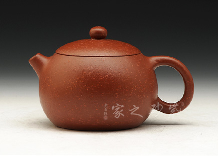 朱泥是原礦呈金黃色或淺黃綠色的紅泥,明代稱“石黃泥”,清代稱“朱泥”。原礦深埋于宜興丁山鎮(zhèn)趙莊山嫩泥礦層的底部,外觀呈咖啡黑色,煉制成泥后稱“朱泥”。用熱水沖淋朱泥壺,立展嬌艷的鮮紅色,氤氳中有紫光游移,泡養(yǎng)包漿后紅色沉穩(wěn)。