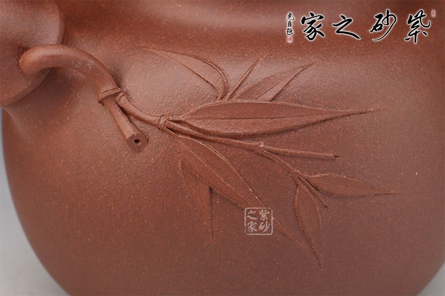 這把《竹報平安》壺,由陳正初之女陳維制作,精選原礦底槽青,泥色古樸,穩(wěn)重敦厚。壺之流、把、鈕皆以竹節(jié)裝飾,師法自然而不拘泥于人工描摹,橋鈕貫通左右,貼花立體而生動,寓意好,此壺值得入手!