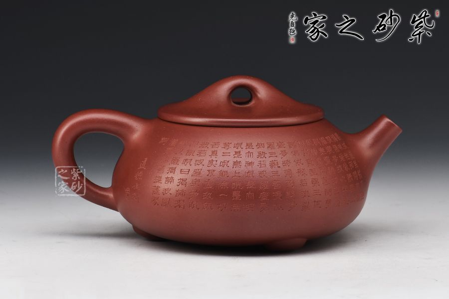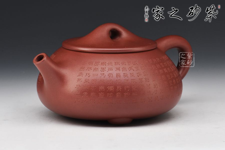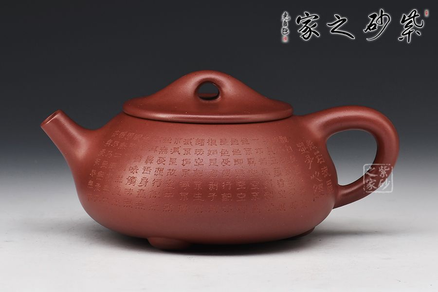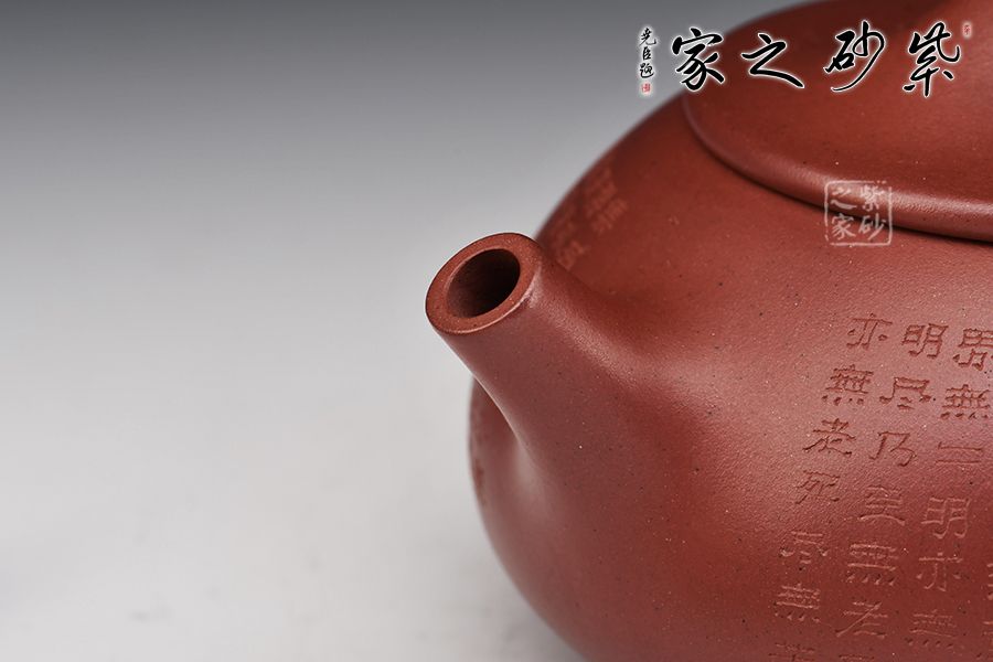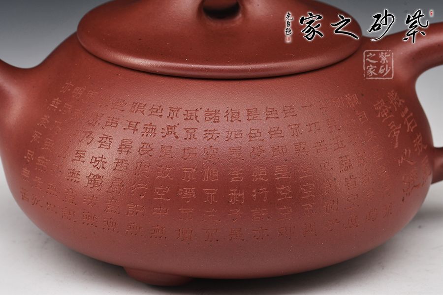 壺身正反面的心經(jīng)陶刻,為茶道注入了更多的人文氣息,適合贈(zèng)賞把玩。