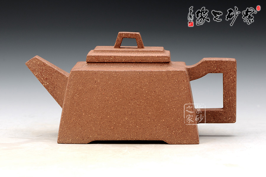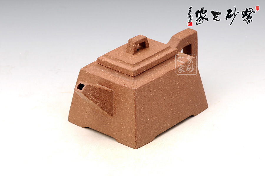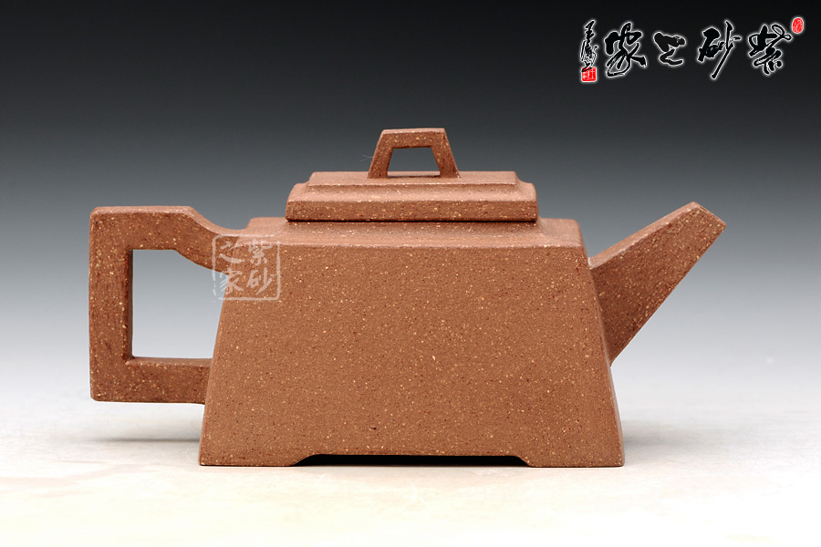 縱觀老師的作品以方器為主,此款升方壺器型簡潔明快,此壺四方基底,下寬上窄,使此壺具備方壺穩(wěn)重剛強(qiáng)的優(yōu)點(diǎn),又不流于呆板單調(diào)。壺鈕與把更加入曲線變化與虛實(shí)空間對應(yīng),全器表現(xiàn)出剛?cè)岵?jì)的美感,足見作者已掌握制壺精髓,能于不變中求變,正是對制壺者最大的考驗(yàn),作品表現(xiàn)出堅(jiān)實(shí)陽剛之氣。