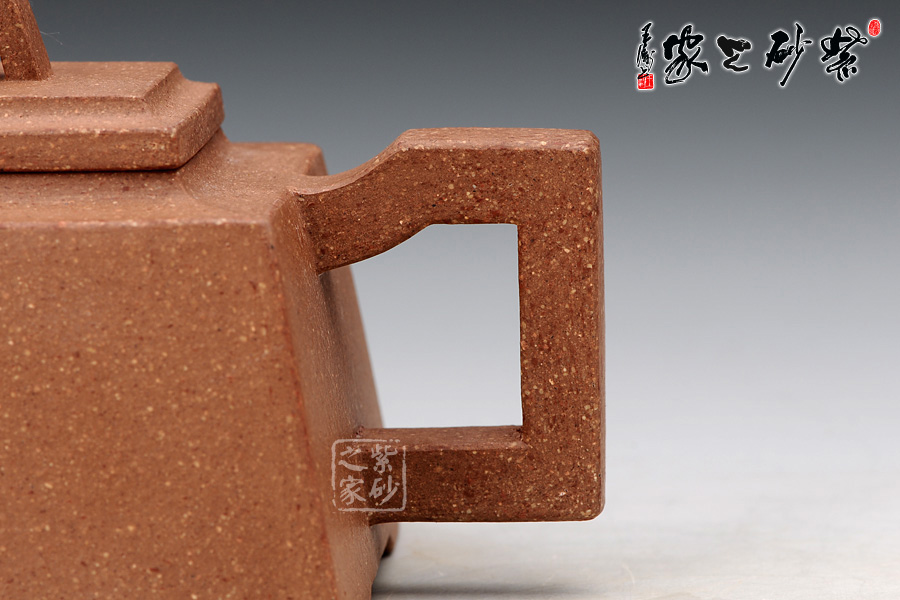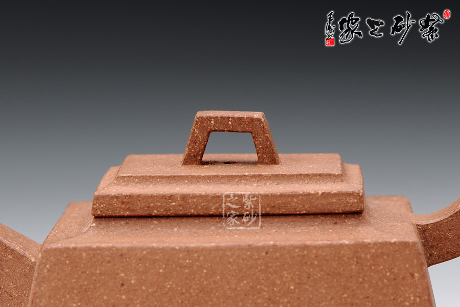 壓蓋式,蓋與壺口完美吻合,嚴(yán)絲合縫,氣密性良好,梯形橋鈕呈漸升之勢