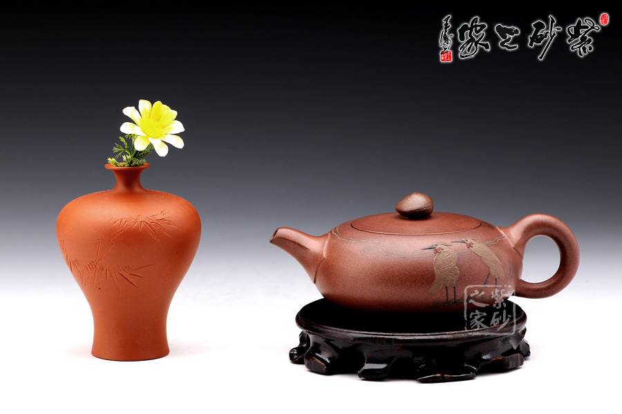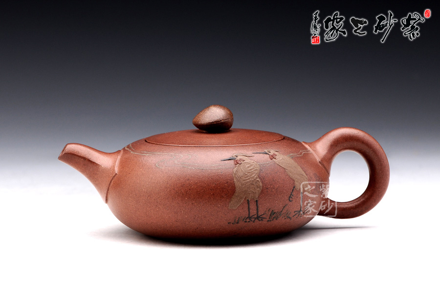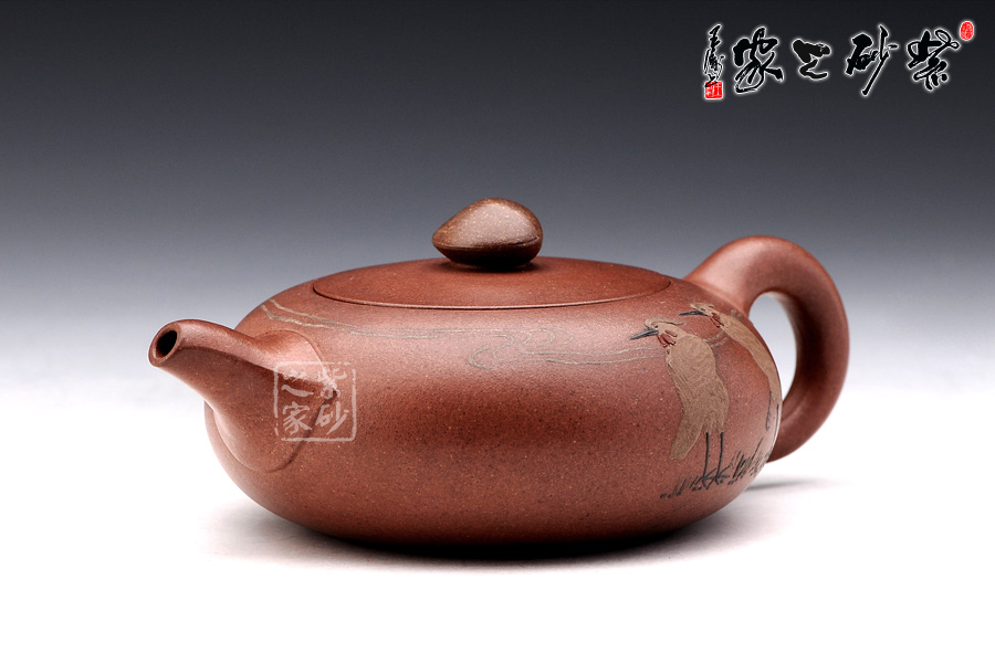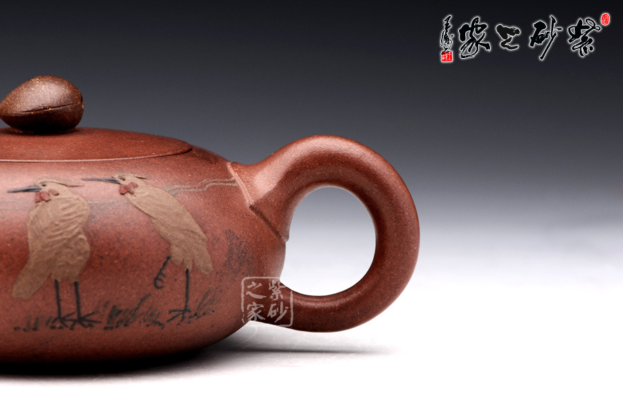 壺身正面老師采用的是泥繪的工藝,兩只仙鶴栩栩如生