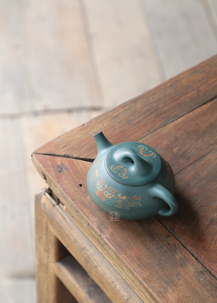 所謂“民國綠”紫砂原料,是指在1949年以前從丁蜀黃龍山上開采出來的一種顏色偏綠的本山段泥,