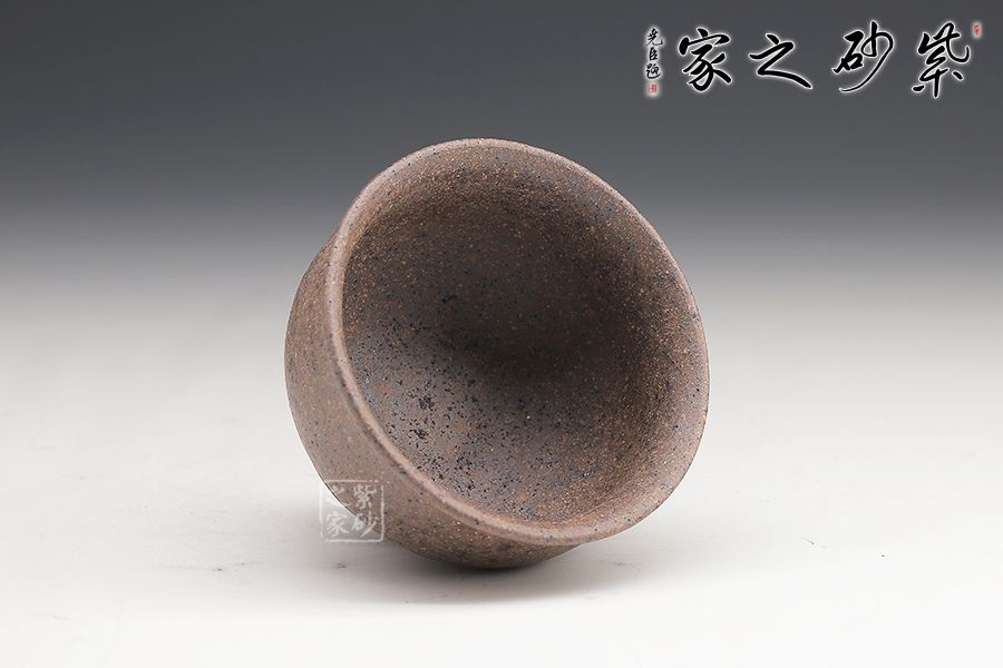 此杯古樸典雅,氣度非凡。圏足,杯腹飽滿,似大肚之態(tài),口沿微撇,握于手中時(shí)正好壓合于手緣。