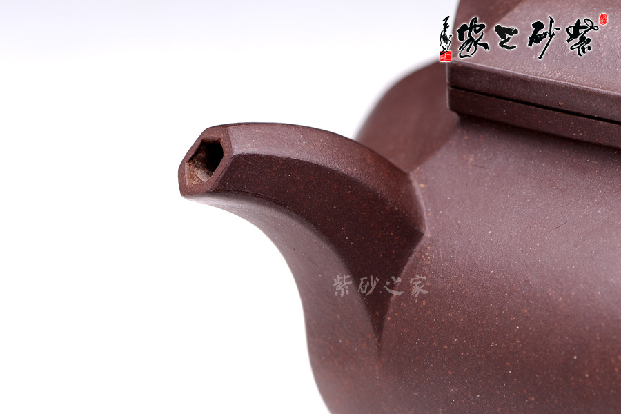 二彎嘴設(shè)計(jì),壺嘴內(nèi)外亦為六邊形,出水利落,不易涎水下滴。