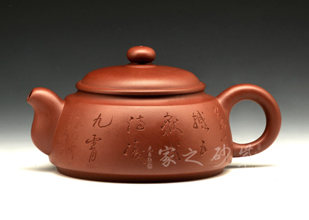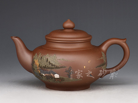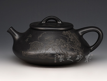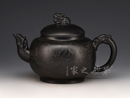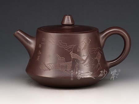 詩畫饋贈,領(lǐng)略文人之風(fēng):其作品多以厚重的文化底蘊(yùn)和精巧的刻繪工藝見長,這得益于其對書畫的極高造詣,一字一景耐人品評,若能解其中之味,便能一語道破壺中天機(jī)。不時 有題詞或畫作贈予壺友,互相交流學(xué)習(xí)。王濤之壺,文人之壺,茶香和著詩韻,乃是壺的精髓所在。近年來的紫砂作品傳統(tǒng)為主,力圖創(chuàng)新,具有鮮明的個性和文化特征。
