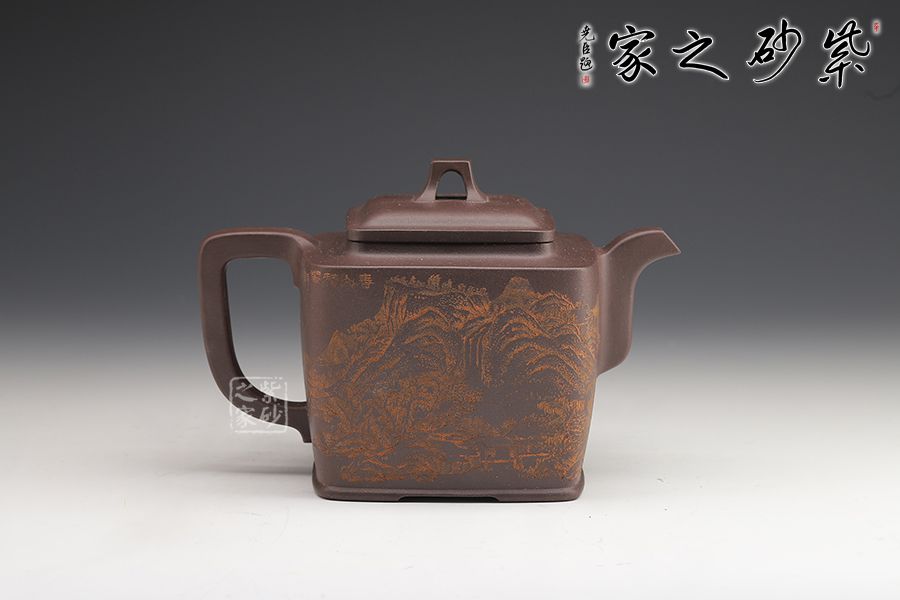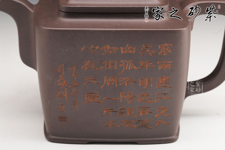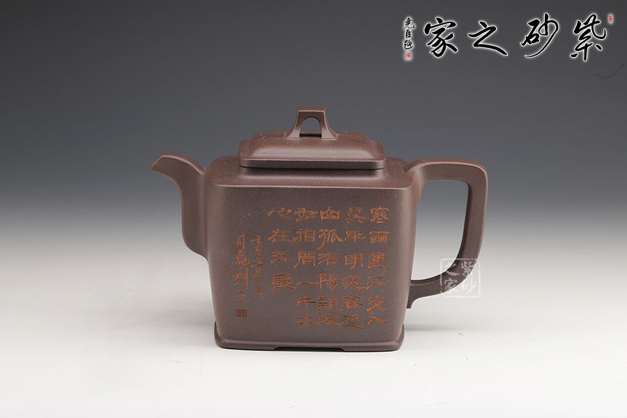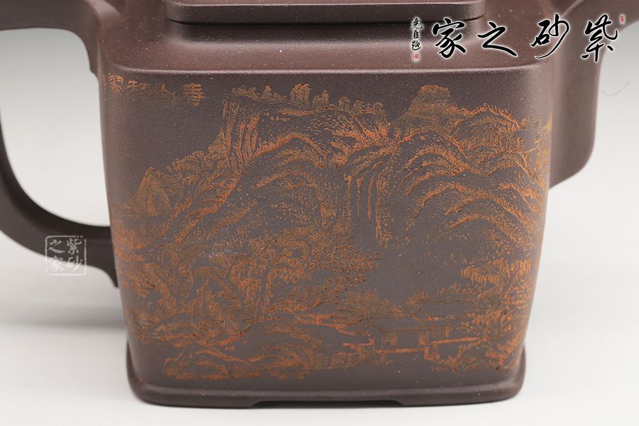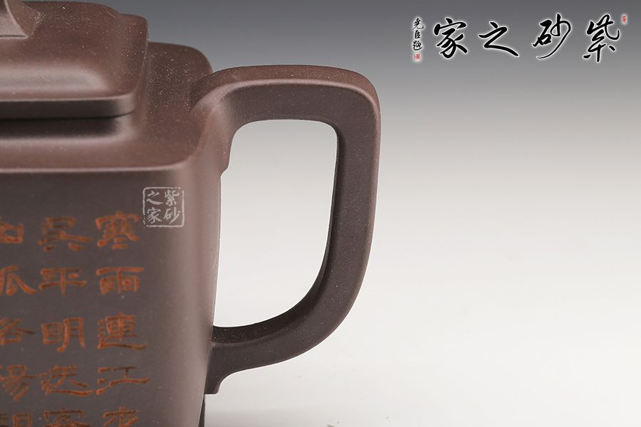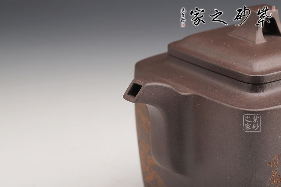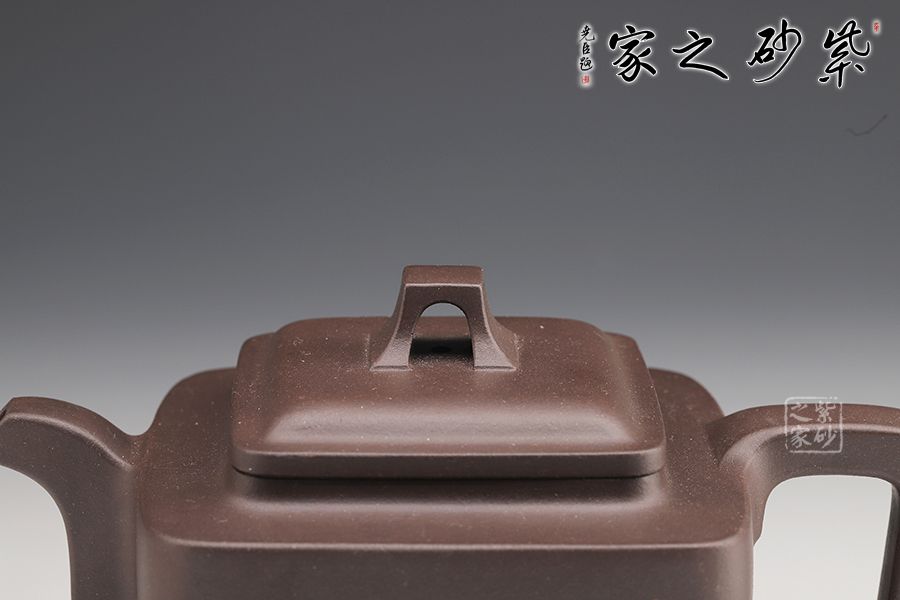 這款四方橋梁雖為經(jīng)典器型,在老師手中形神俱備,更加出彩,方形橋鈕,寬厚有力。四方鼓蓋,折線分明,截蓋壓于壺口之上,氣勢(shì)雄大,彎流在方器中極為常見,其霸氣十足,嘴頭平衡直出,朝向水平方向,方形壺把,轉(zhuǎn)折迂回之間步步到位,四方壺體加底設(shè)計(jì),穩(wěn)重中見大氣,是制作方壺人的胸襟和氣度。傳統(tǒng)方器,韻味十足。