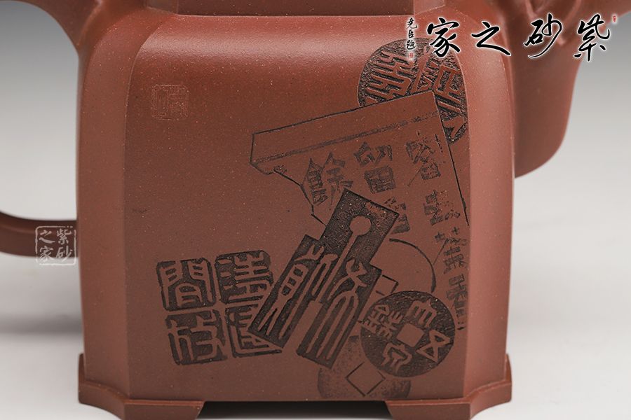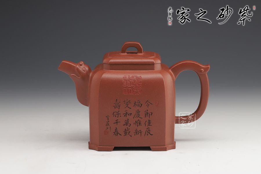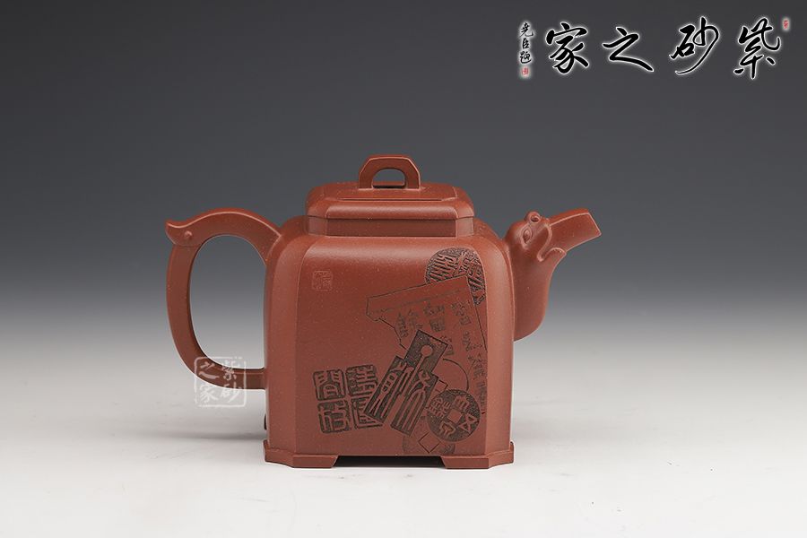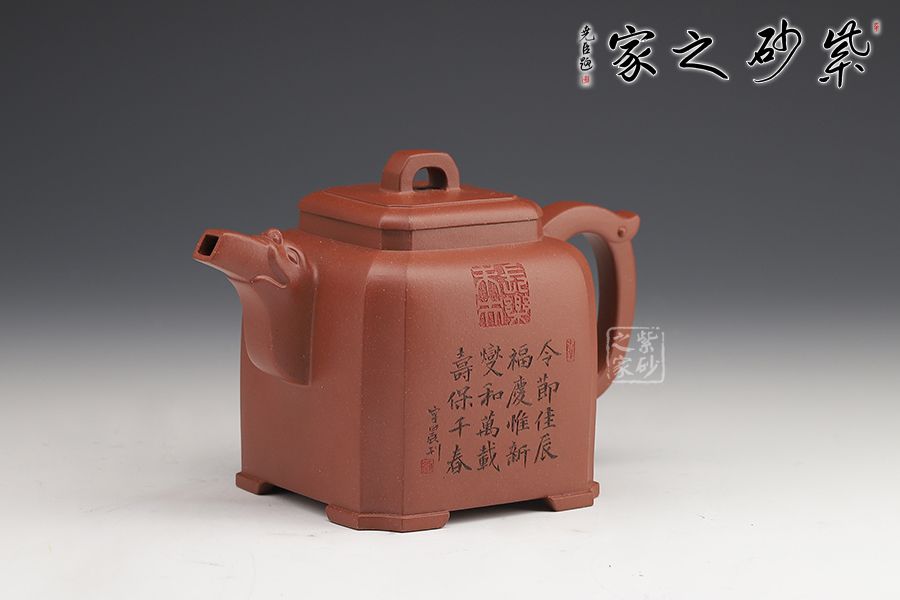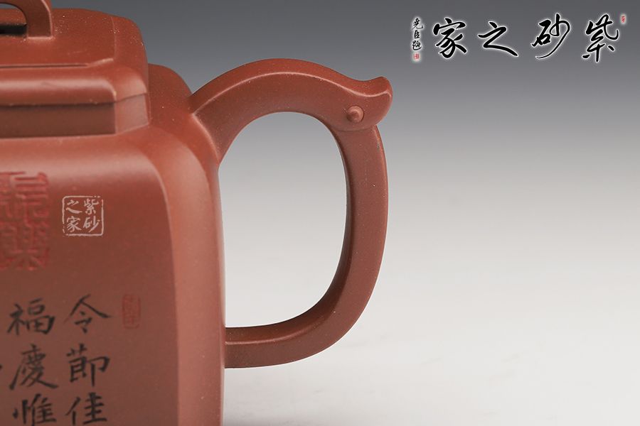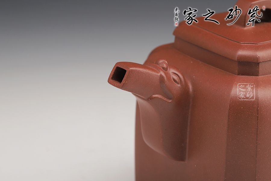 這款四方龍尊方圓結(jié)合,四方壺體,四道折角線運(yùn)用得益。壓蓋設(shè)計(jì),嚴(yán)絲合縫, 方形橋鈕,寬厚有力。龍頭彎流,霸氣十足,飛把拿捏舒適。四角加底,設(shè)計(jì)巧思,更顯韻味。