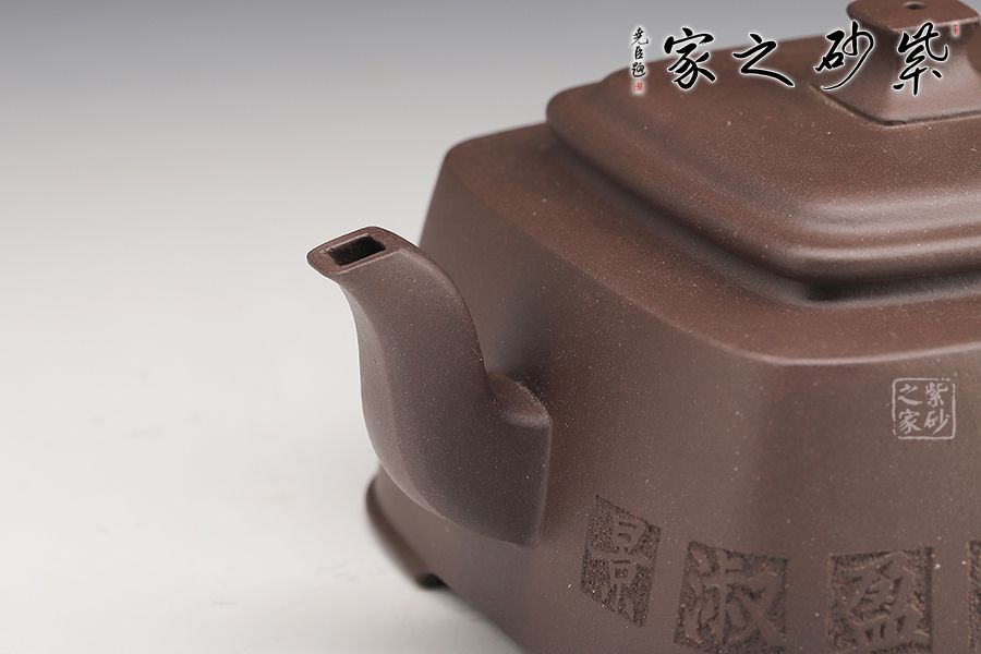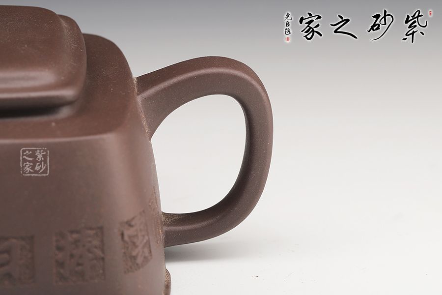 四方玉柱精選老紫泥,全手工精制而成,泥色古樸。壺體方中藏圓,線面挺括平正。四方鈕、蓋與壺身呼應(yīng),層層遞進(jìn),營造豐富的層次感。流、把皆作四方狀,三彎流自然胥出,圓把挺而有力,剛中帶柔,線條流暢,過渡自然。整壺敦厚樸實,比方器多了一份圓潤之美,比圓器多了一份剛毅之力,做工精細(xì),獨顯作者深厚之功底,兼具觀賞性與實用性,值得收藏。