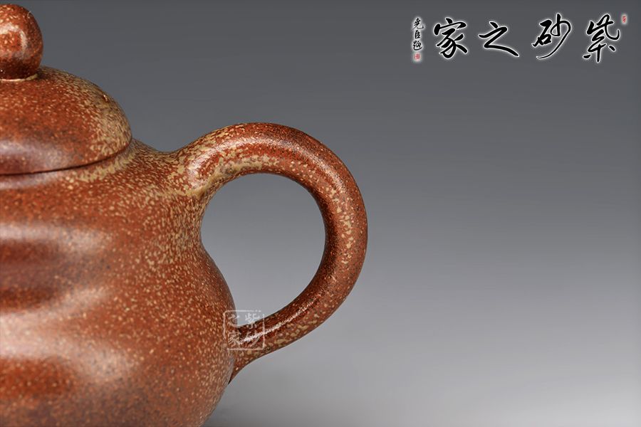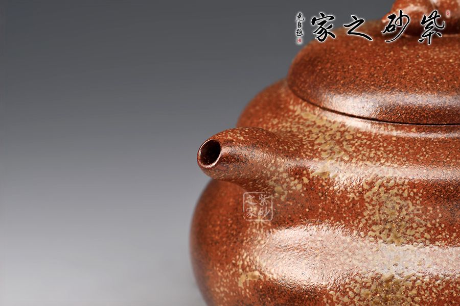 泥性:原礦因含緞泥、紅泥、紫泥等諸多共生礦,陶之后,于深沉之“橙紅色”底上,滿佈五彩斑斕的粗細(xì)、深淺之紅、黃星斑點(diǎn)。