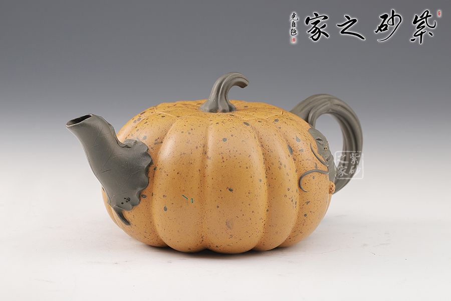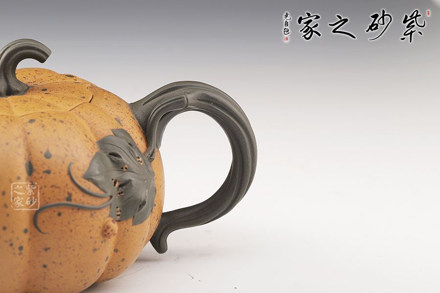 此壺采用原礦黃金段,為秋陽(yáng)下的南瓜,渾樸厚重,結(jié)練壯美,七星瓢蟲栩栩如生,生動(dòng)活潑。經(jīng)秋霜而道勁,聚元?dú)舛渑?,用它品茗,豈不是得天地調(diào)和的甘露。