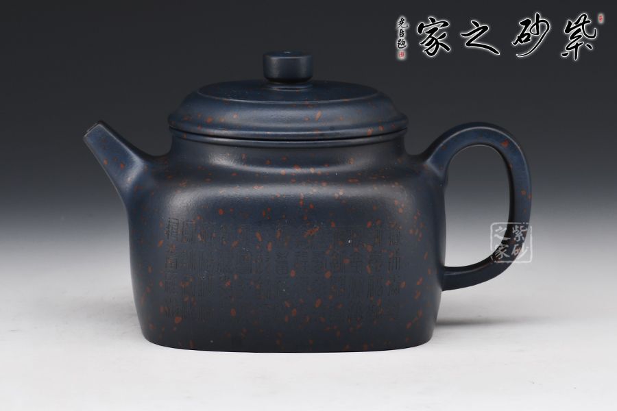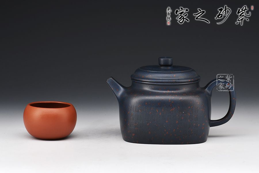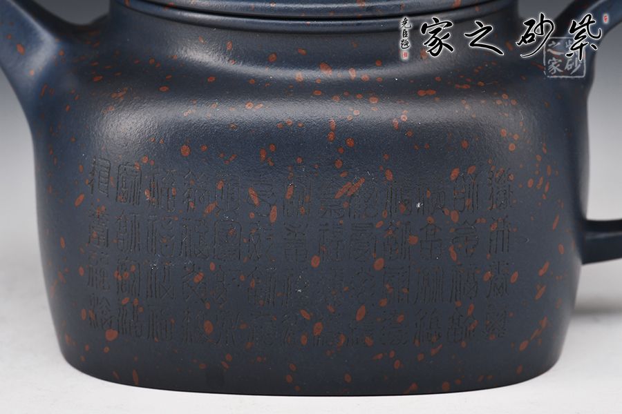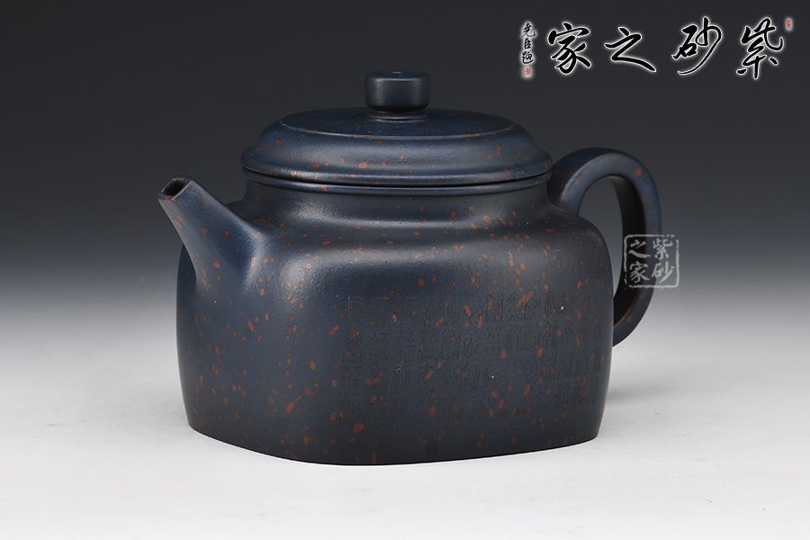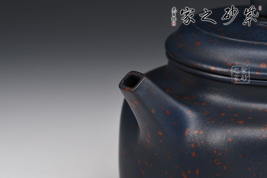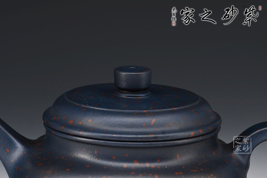 德鐘是非常經(jīng)典,難以超越的一種壺型。這款作品外形古樸敦厚,沉穩(wěn)周正,四方成壺身,相接處圓潤(rùn)過(guò)渡,方圓結(jié)合,剛?cè)岵?jì)。壓蓋微聳,壺鈕四方,盡顯大氣。直流嘴挺立,出水爽利,圈把略見(jiàn)方形,端握方便。 作品為紅砂燒成,顏色亮麗,點(diǎn)點(diǎn)紅砂點(diǎn)綴其間,是非常少見(jiàn)的特優(yōu)級(jí)泥料。