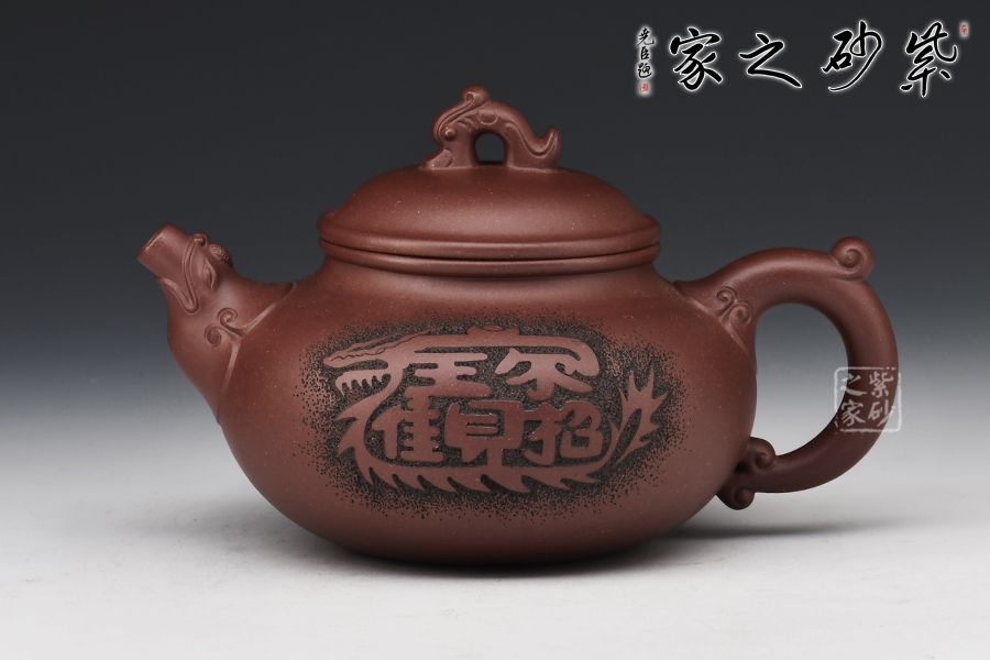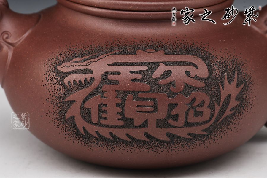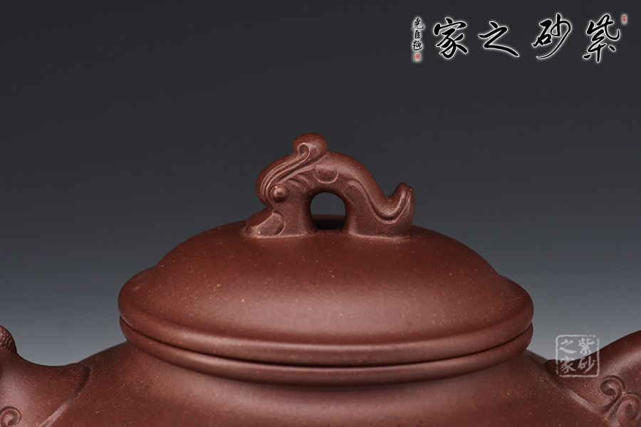 此尊“飛龍?jiān)谔臁眽兀w現(xiàn)了龍文化在紫砂茗壺上的創(chuàng)新之美。