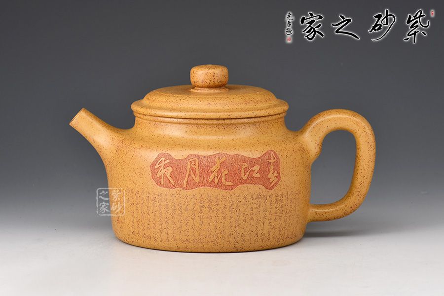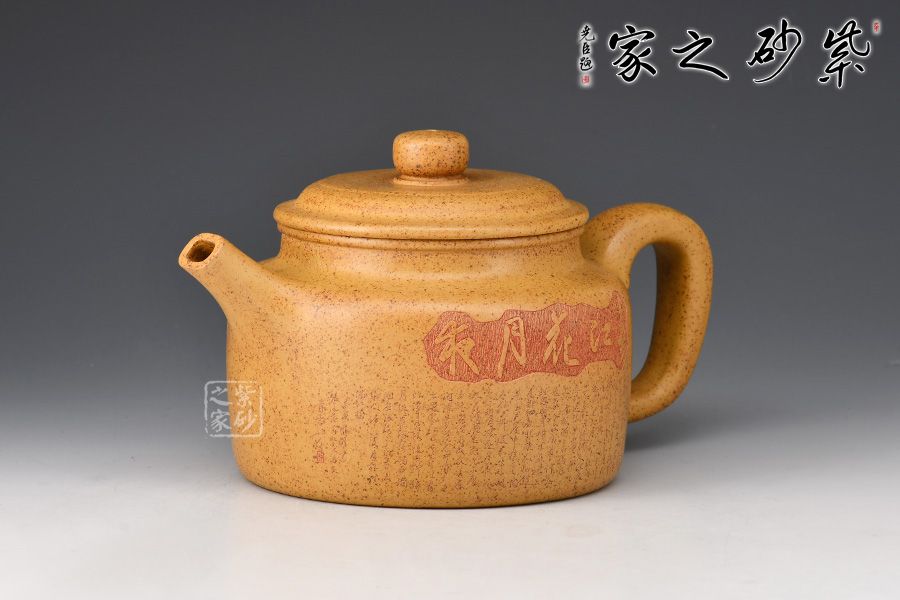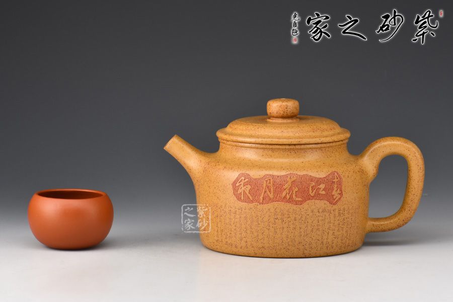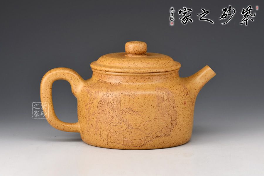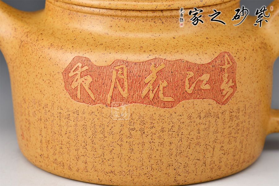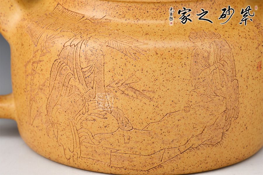 像雙唇輕抿,平和端莊、神態(tài)自若。壺身微刻《春江花月夜》,居士蕉下喝茶,一派閑情。