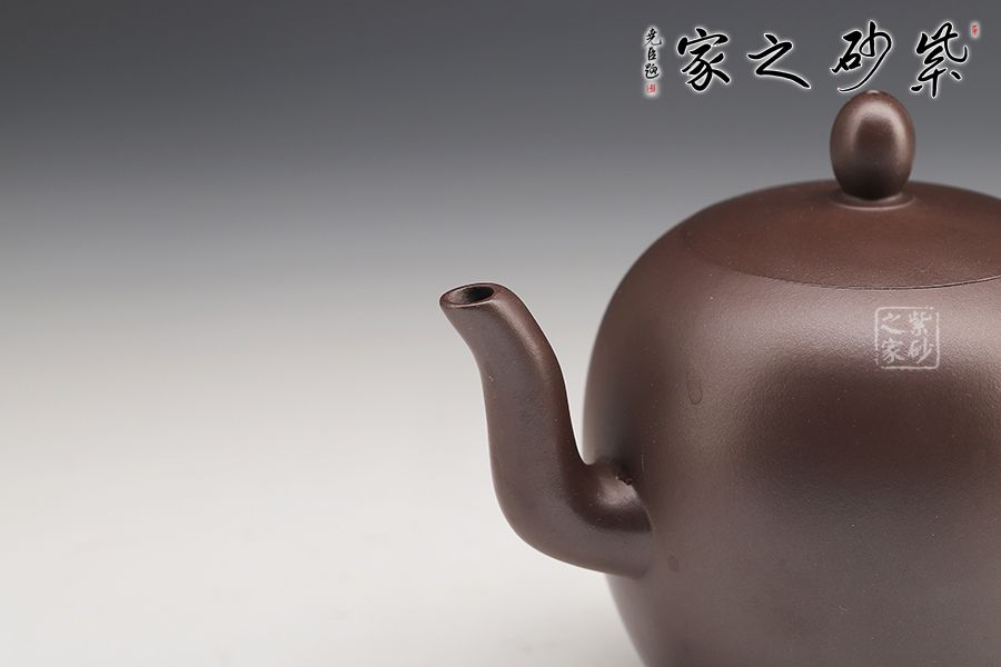 美人肩就是很窄很女性化的肩膀,美人之肩飽滿渾厚,飽滿圓潤的壺身、流暢優(yōu)雅的線條,猶如盛唐美人的風韻,足見作者在制壺之時之用心有力。此壺帶著江南精致秀麗的細膩輕巧,耳形端把上下跨度極大,弧度流暢下拉,端握舒適;壺嘴暗接三彎流,嘴口平實,出水婉轉(zhuǎn)悠揚。精選老紫泥制成,光潔素雅無任何裝飾,清麗優(yōu)雅氣質(zhì)令人喜愛。