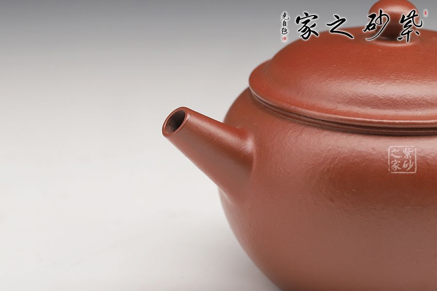 此壺壺身圓潤飽滿,直流壺嘴胥出自然,與壺的結(jié)合十分協(xié)調(diào),圈把銜接精美,顯示了一種舒心隨意,蓋面圓潤凸出,一粒壺鈕珠圓玉潤。