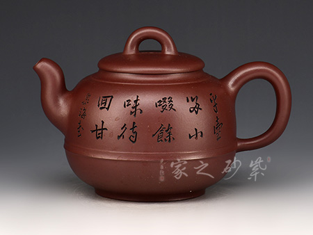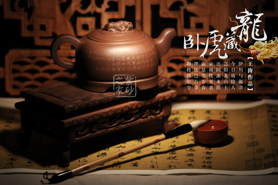 詩畫饋贈,領(lǐng)略文人之風(fēng):其作品多以厚重的文化底蘊(yùn)和精巧的刻繪工藝見長,這得益于其對書畫的極高造詣,一字一景耐人品評,若能解其中之味,便能一語道破壺中天機(jī)。不時 有題詞或畫作贈予壺友,互相交流學(xué)習(xí)。王濤之壺,文人之壺,茶香和著詩韻,乃是壺的精髓所在。近年來的紫砂作品傳統(tǒng)為主,力圖創(chuàng)新,具有鮮明的個性和文化特征。