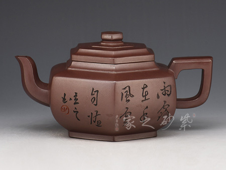 詩畫饋贈(zèng),領(lǐng)略文人之風(fēng):其作品多以厚重的文化底蘊(yùn)和精巧的刻繪工藝見長,這得益于其對書畫的極高造詣,一字一景耐人品評,若能解其中之味,便能一語道破壺中天機(jī)。不時(shí) 有題詞或畫作贈(zèng)予壺友,互相交流學(xué)習(xí)。王濤之壺,文人之壺,茶香和著詩韻,乃是壺的精髓所在。近年來的紫砂作品傳統(tǒng)為主,力圖創(chuàng)新,具有鮮明的個(gè)性和文化特征。