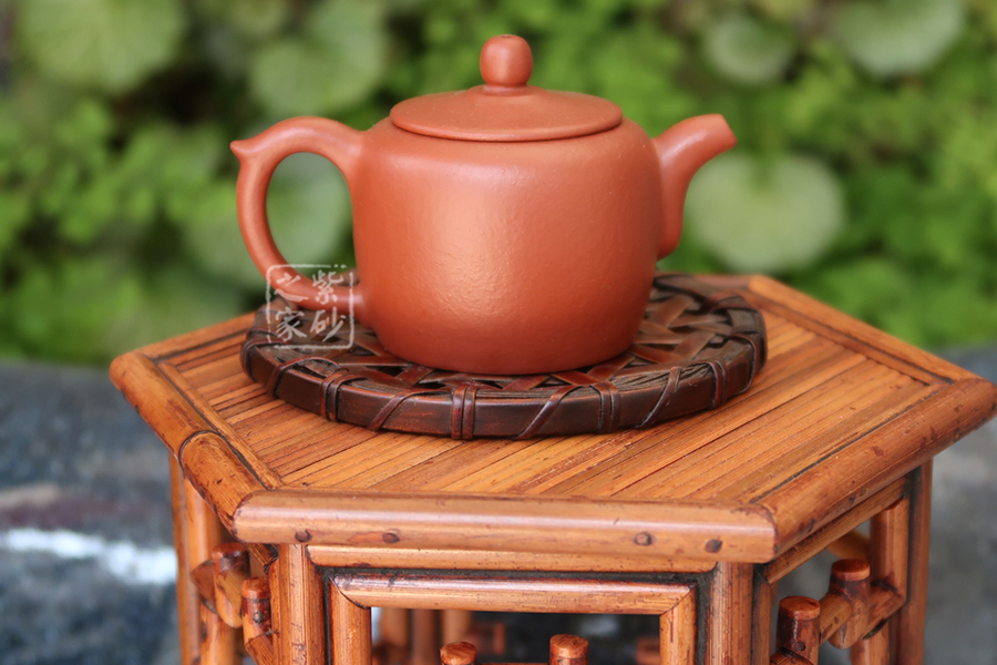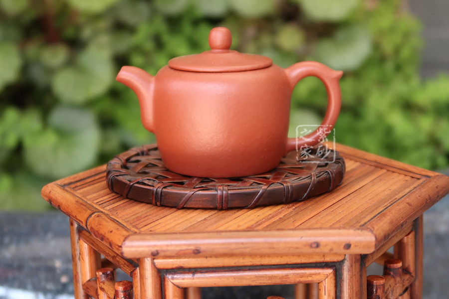 朱泥是原礦呈金黃色或淺黃綠色的紅泥,明代稱“石黃泥”,清代稱“朱泥”。原礦深埋于宜興丁山鎮(zhèn)趙莊山嫩泥礦層的底部,外觀呈咖啡黑色,煉制成泥后稱“朱泥”。用熱水沖淋朱泥壺,立展嬌艷的鮮紅色,氤氳中有紫光游移,泡養(yǎng)包漿后紅色沉穩(wěn)。
