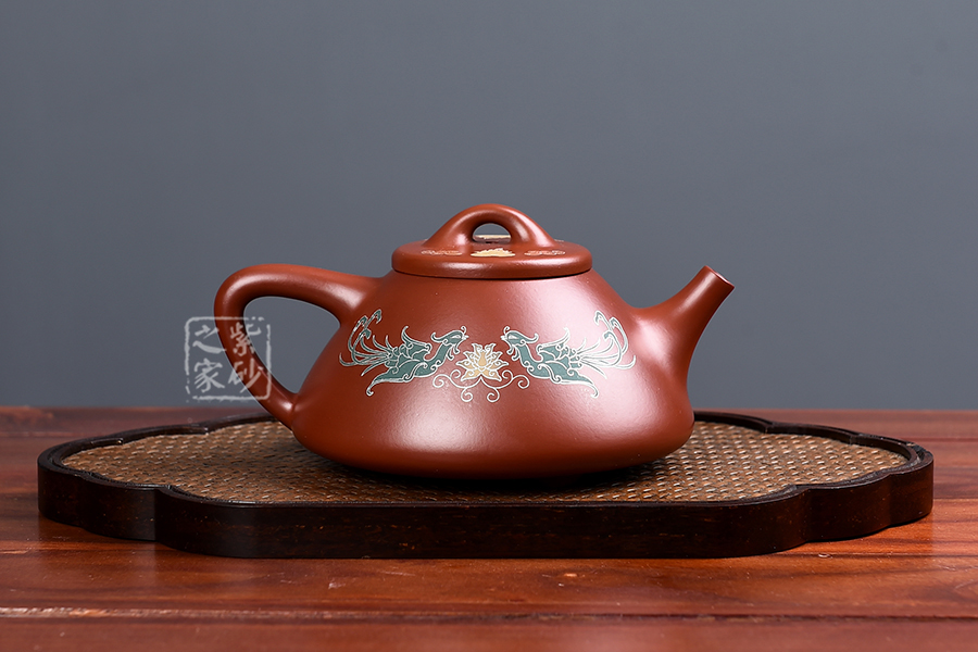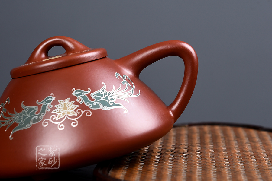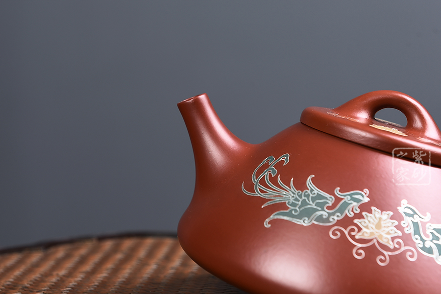 特點:質(zhì)感綿密、緊實細(xì)緻,持之扎實沉重、紅潤豔麗,泥中極品,無以倫比;泥胚含少許原礦顆粒,沖淋熱水后色變極大,呈紅中帶紫,養(yǎng)壺易現(xiàn)“包漿”之美。