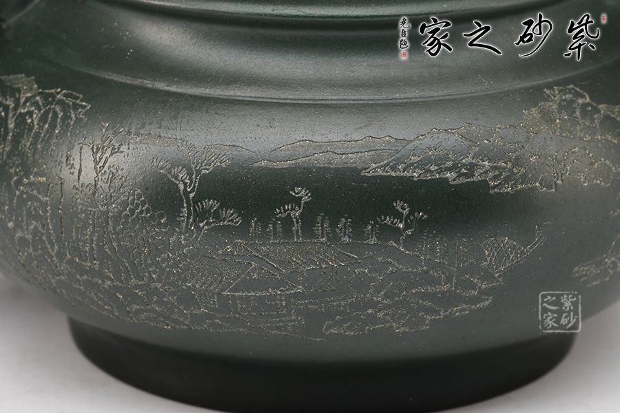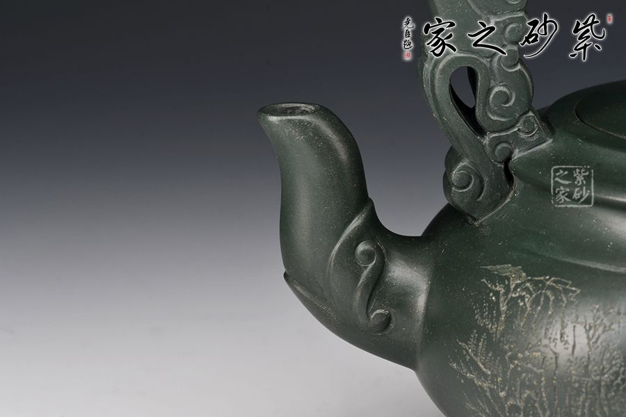 此壺造型豐滿,腹提得起來,底收得有力,提梁高度適宜,恰形成虛的空間以緩沖身筒的厚重,給人一種沉穩(wěn)博雅的韻味,和明式家具的凝重簡潔之氣相通;如意鈕、海棠提梁,巧妙地營造出簡勁優(yōu)雅的明代審美境界。