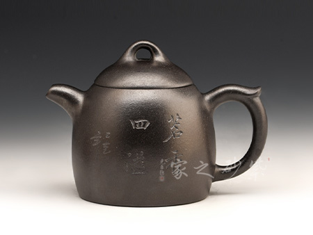 此壺雖是紫砂泥料制成,卻重如鑌鐵,色如玄鐵,感覺上更像一把“鐵壺”。