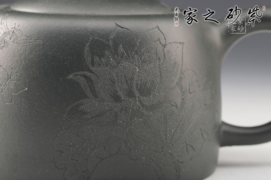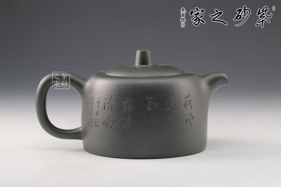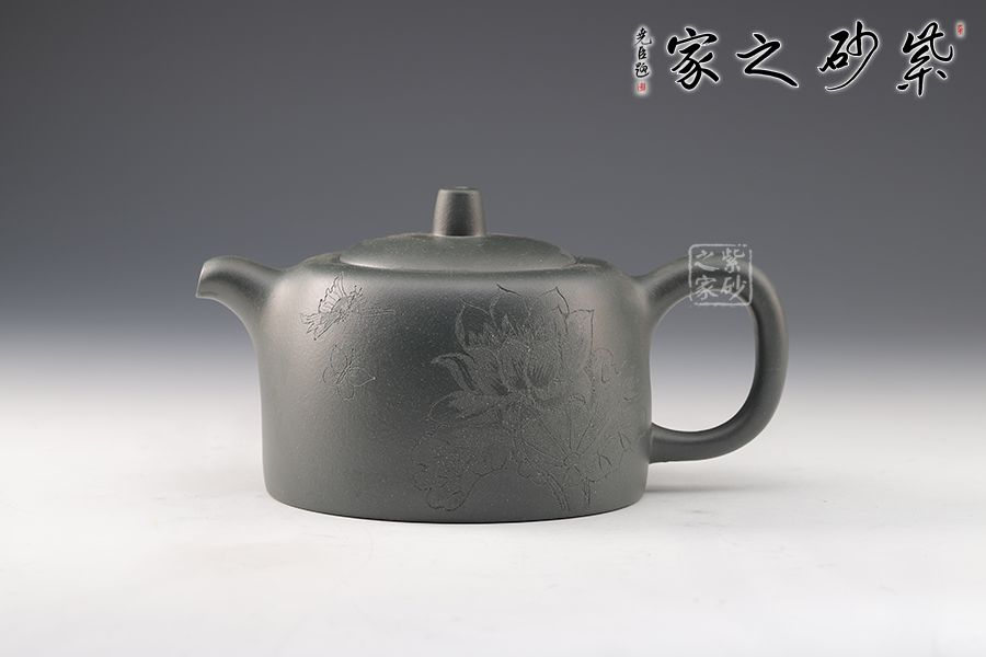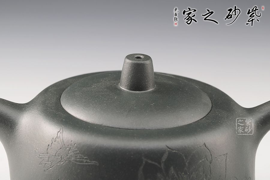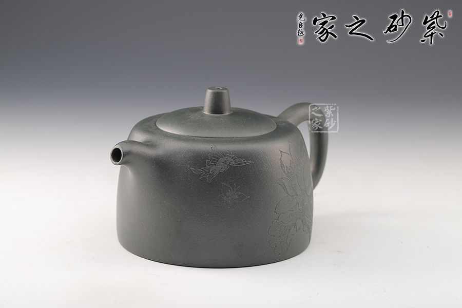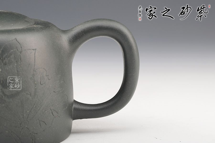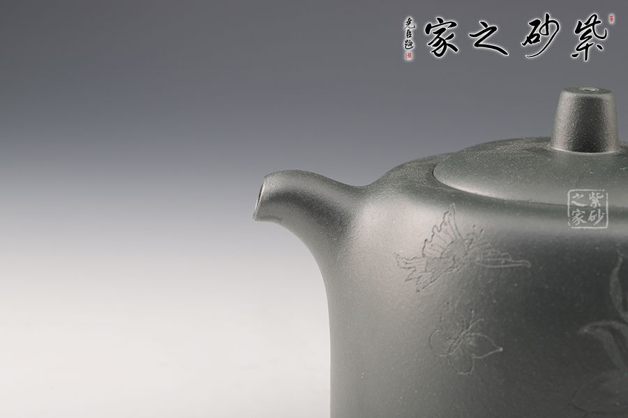 壺身以井欄為型,線條圓潤有力,簡潔明快。嵌蓋之上,圓柱形鈕挺拔矗立,彎流俊俏胥出,出水爽利,耳把端莊秀麗,端握舒適??汤L裝飾,比例精湛,氣韻內斂,雋永耐看,成色潤澤,易于泡養(yǎng),是一把非常實用的殺茶利器,值得入手。