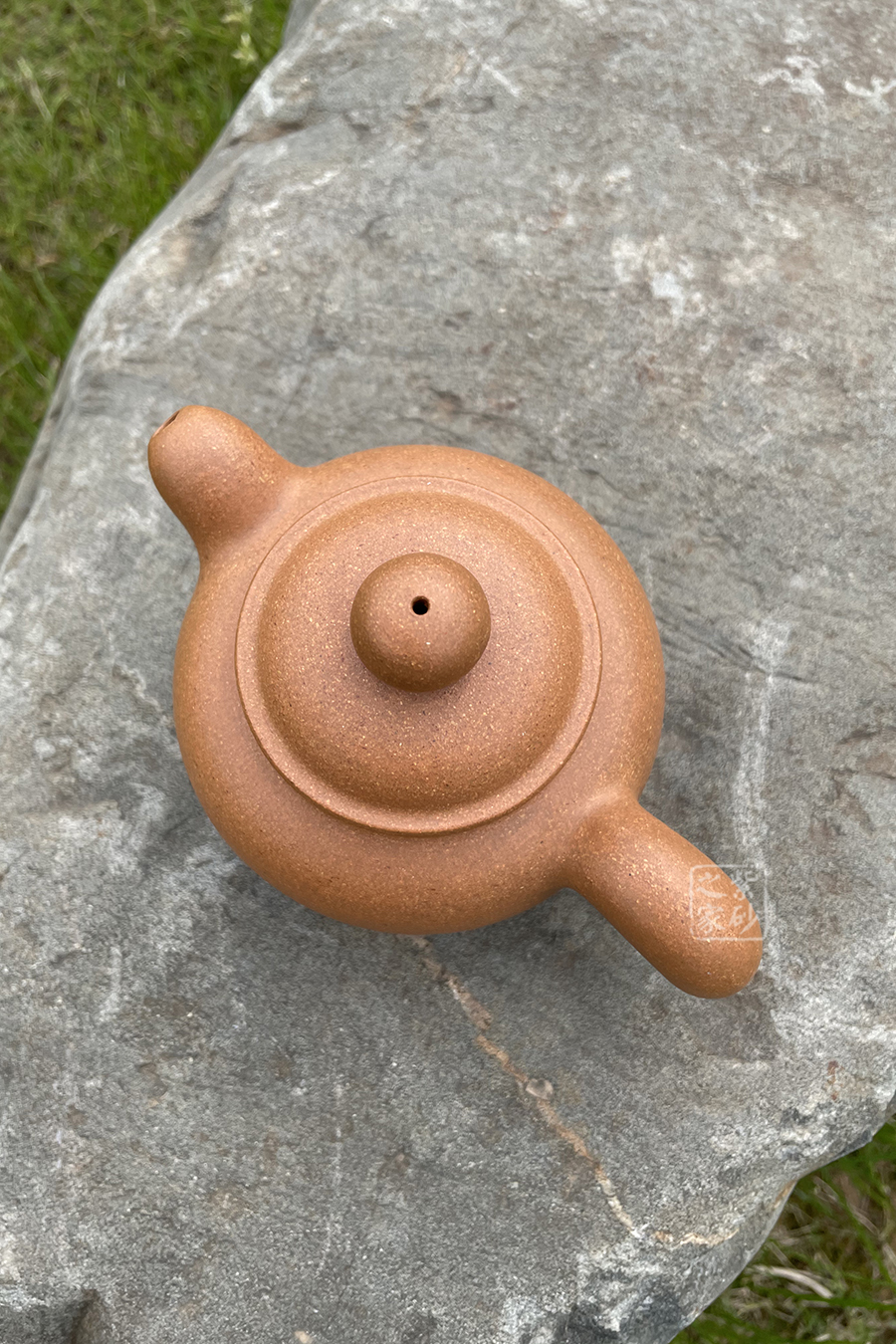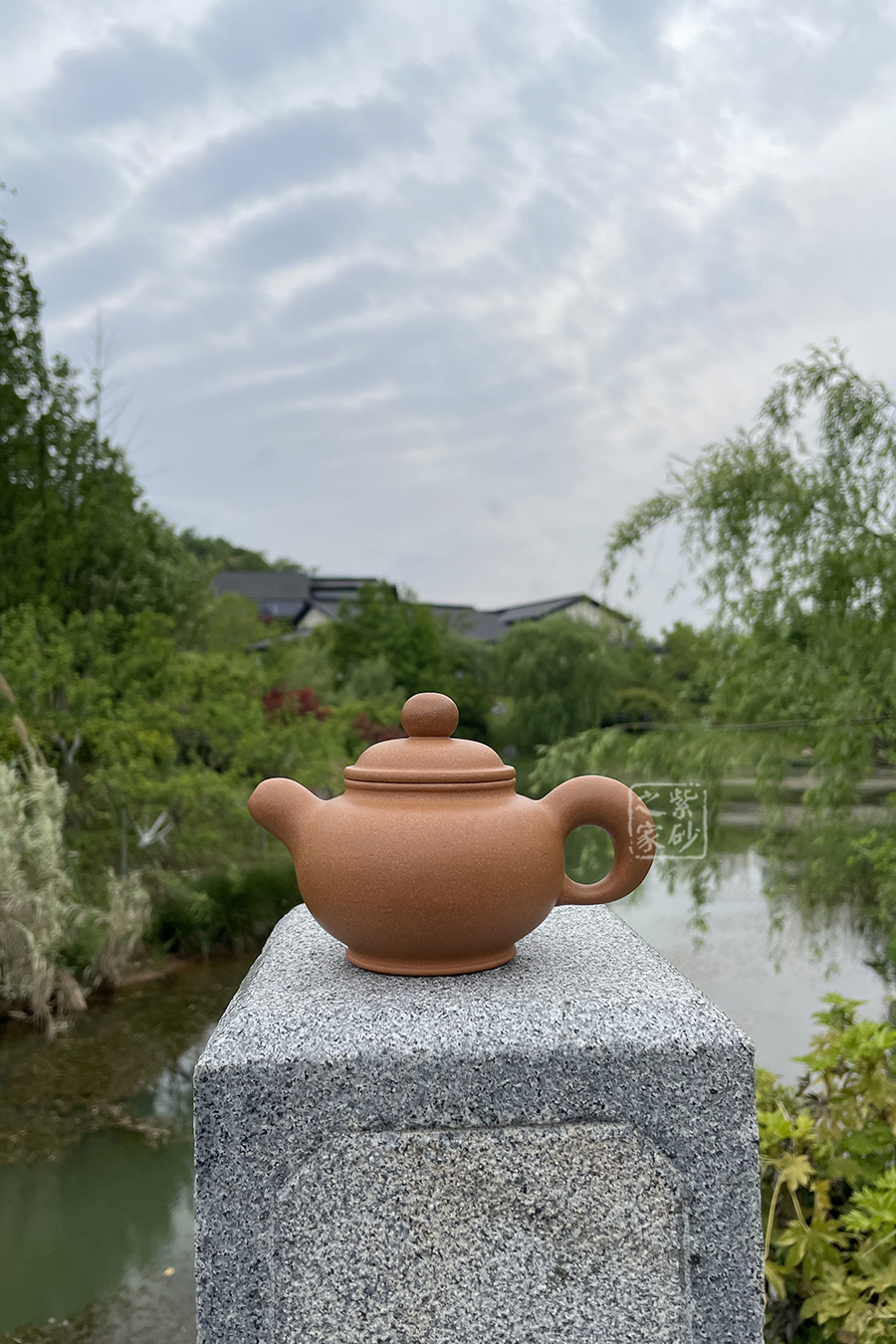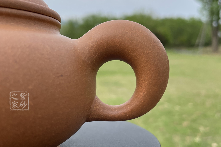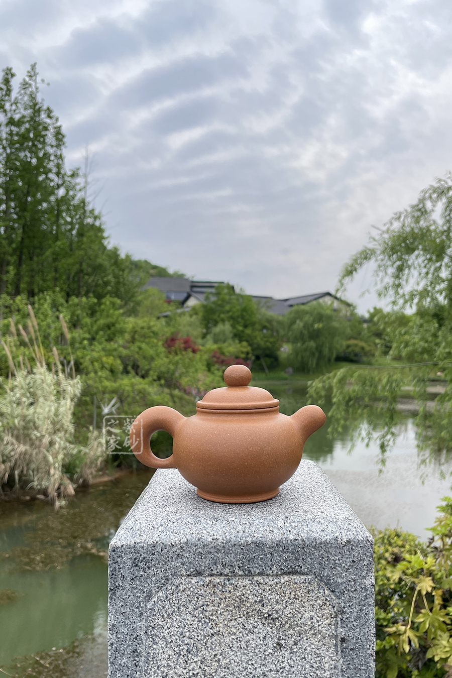 李婭老師所制的掇只壺,壺身扁圓,挺拔聳立;壺底有圈足,高高托起壺身,有傲骨凌霜之范;壺鈕為圓形,與壺身遙相呼應(yīng);壓蓋式壺蓋唇邊厚實,莊重又不失靈氣;配上一彎流壺嘴,正耳式把,整體氣質(zhì)溫婉,秀美大方,是廣大壺友不錯的品茗之選。