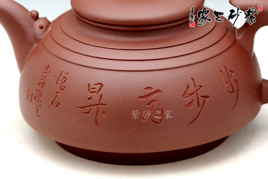 A面: 裝飾: 素刻詩詞 裝飾者:楊志仲 裝飾內(nèi)容: 壺身篆刻由陶刻大師楊志仲(悟石)操刀,壺身正面素刻“步步高升”四個大字,寓意前程似錦,給人對未來的期望和信心,是再好不過的祝福,送禮的絕佳之選。