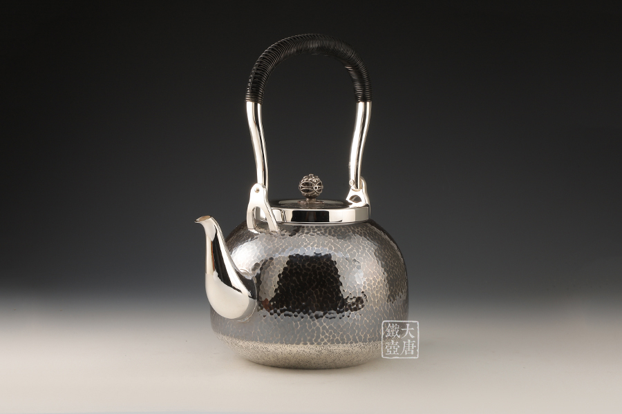 純銀湯沸 5寸 熏銀錘目紋 [ 編號:152868 ]