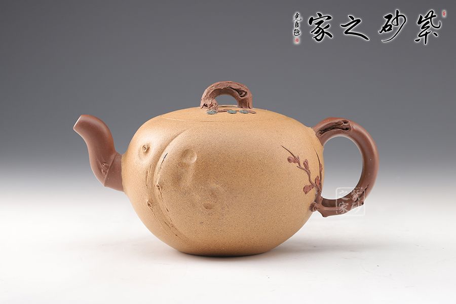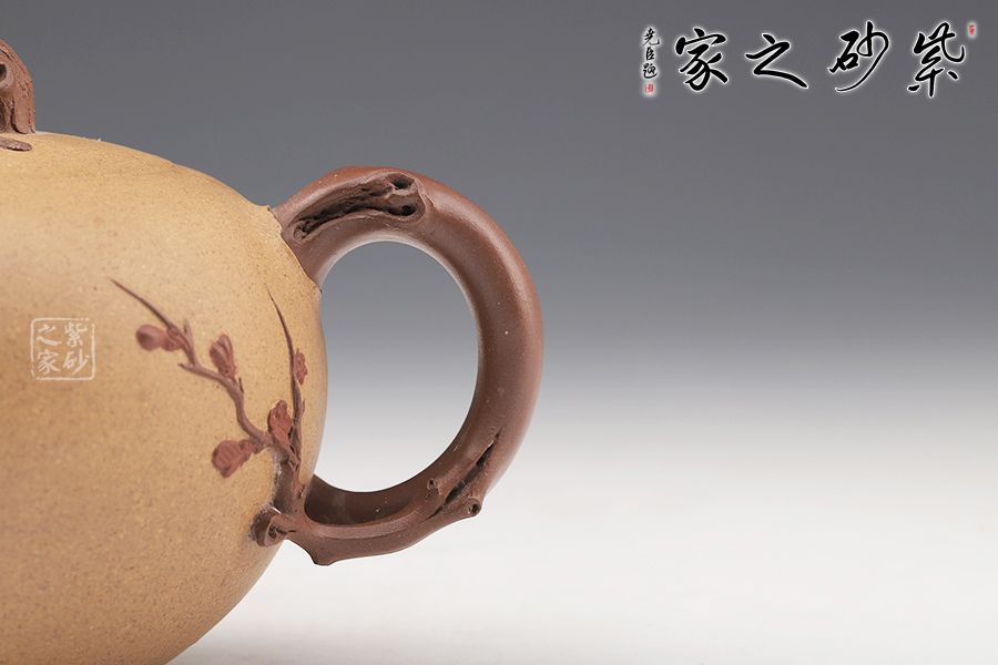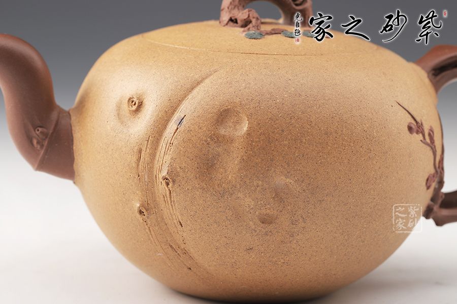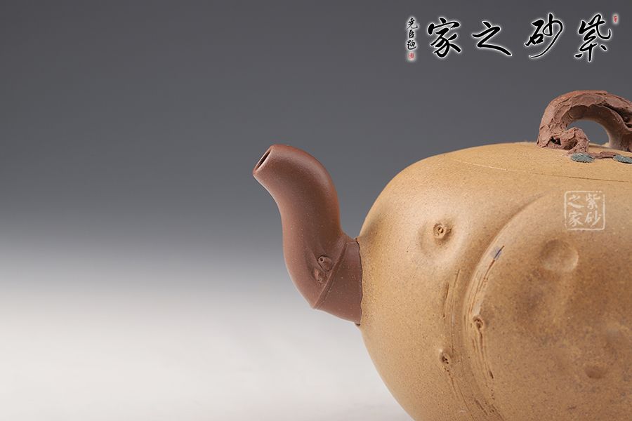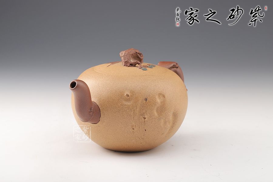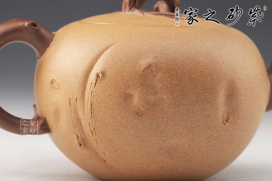 泥性:感甜嫩綿密,質(zhì)堅(jiān)而溫潤(rùn),呈近田黃色調(diào),為江蘇宜興趙莊山系朱泥礦~黃石黃之共生礦,經(jīng)挑揀練製而成,因含鐵量只達(dá)6%左右,致陶之后呈“金田黃色”。