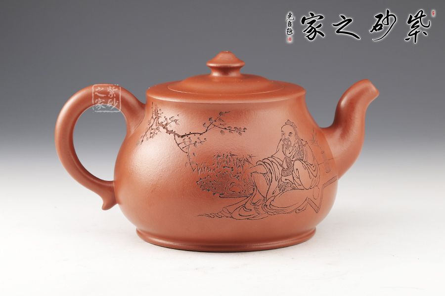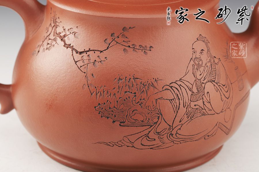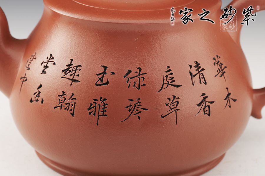 此壺雕刻:華木清香庭草綠,琴玉雅趣翰堂悠 整壺大氣自然 壺嘴彎嘴出水爽利 壺身曲線飽滿 壺把拿捏比例協(xié)調(diào) 壺蓋設(shè)計巧妙 整壺意境巧妙 渾然天成