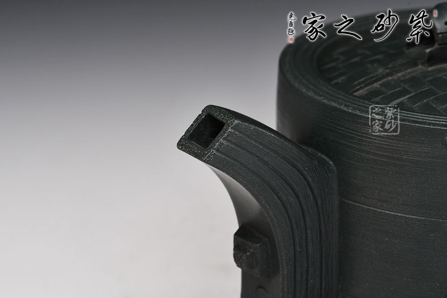 此壺精選民國(guó)綠泥,老師全手工制成,泥料亮麗。壺身圓柱狀,象征著滿滿的糧倉(cāng),嵌蓋設(shè)計(jì),竹節(jié)壺鈕,方便拿捏。方把、方嘴,精工細(xì)作。該壺,生活味道濃厚,推薦珍藏。