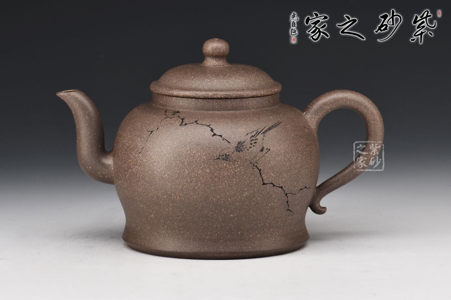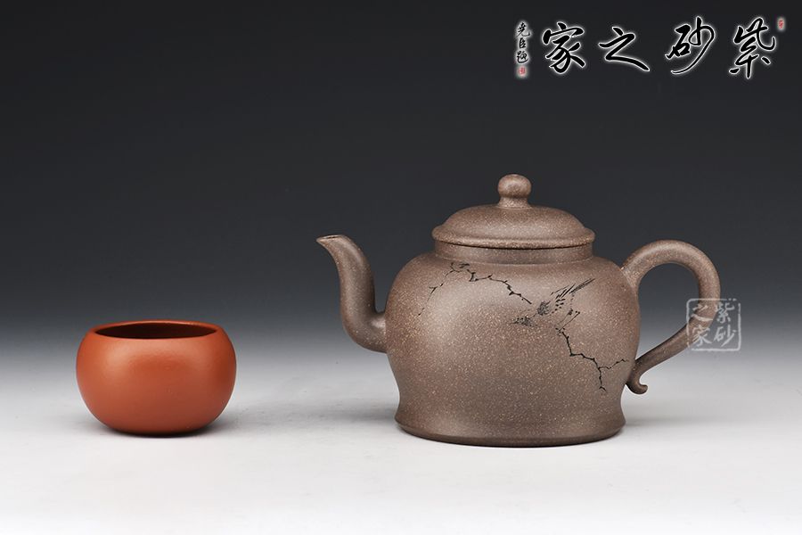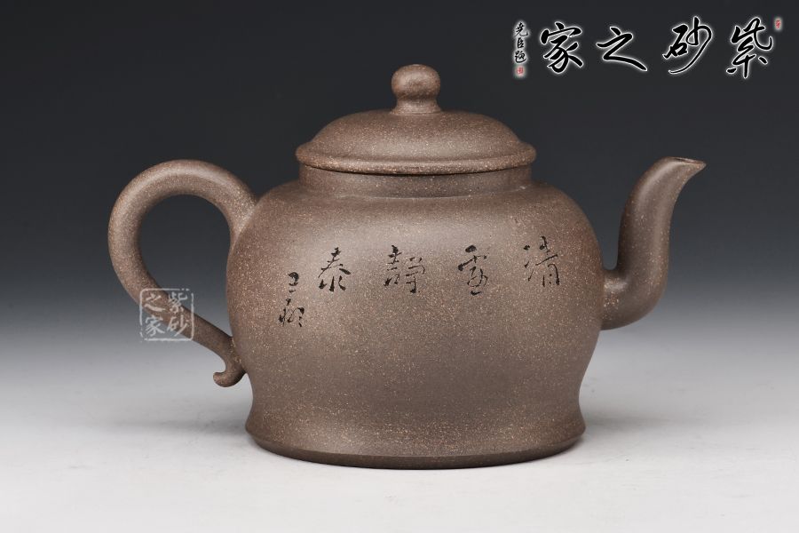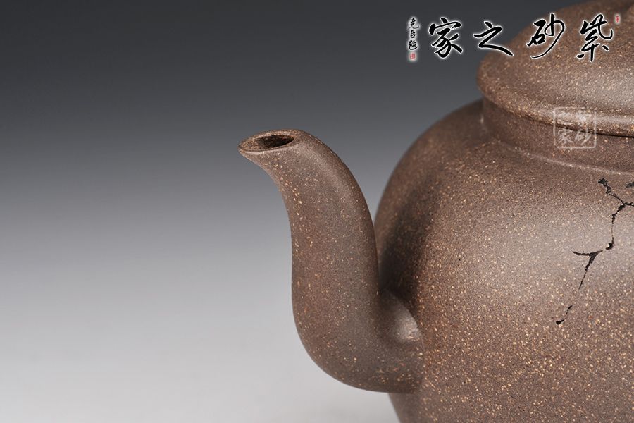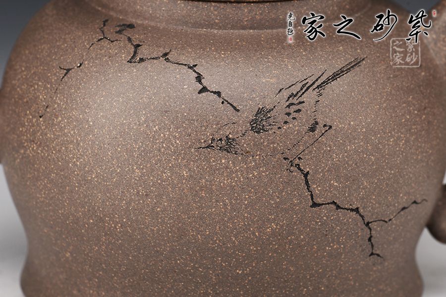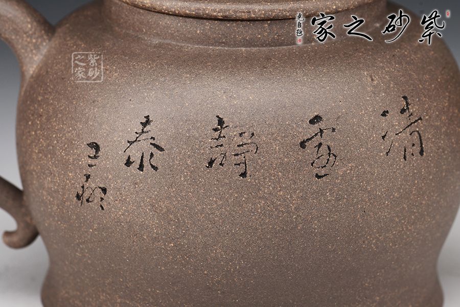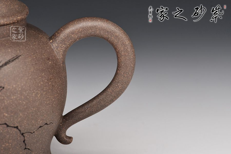 清虛壺精選青段泥制作而成,泥色亮麗,好泡養(yǎng)。壓蓋設計,嚴絲合縫,寶珠壺鈕點綴其間,小巧可愛。三彎嘴線條流暢,出水爽利,耳把拿捏舒適。王翔老師陶刻,寥寥幾筆刻畫精美,栩栩如生。