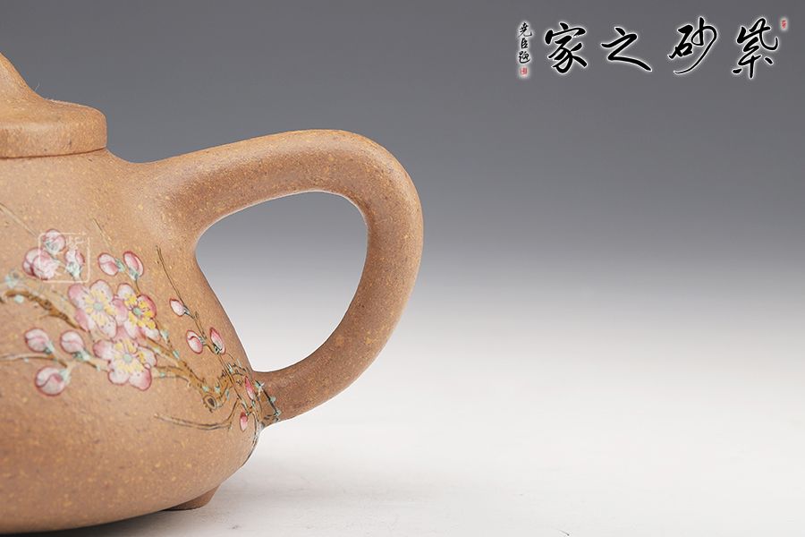 此壺造型渾厚樸拙,曲線柔和流暢。壺身呈梯形,三角釘足支撐,給人以輕靈而穩(wěn)重之感。直流壺嘴,簡(jiǎn)潔見(jiàn)力度,暗接處理,溶于壺身整體。壺把呈倒三角勢(shì),與壺身之型互補(bǔ),形成和諧的美學(xué)效果。平壓蓋,橋鈕,干凈利索,比例恰當(dāng),充分體現(xiàn)出秀巧精工為上的特點(diǎn)。