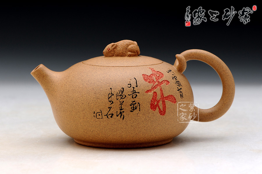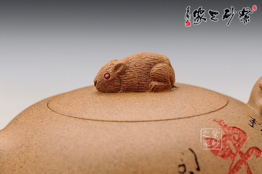A面: 裝飾: 詩詞 裝飾者:陶刻藝人 裝飾內(nèi)容: 壺身正面篆刻的是“此處有米引吾到”,寫的就是鼠的特點(diǎn)