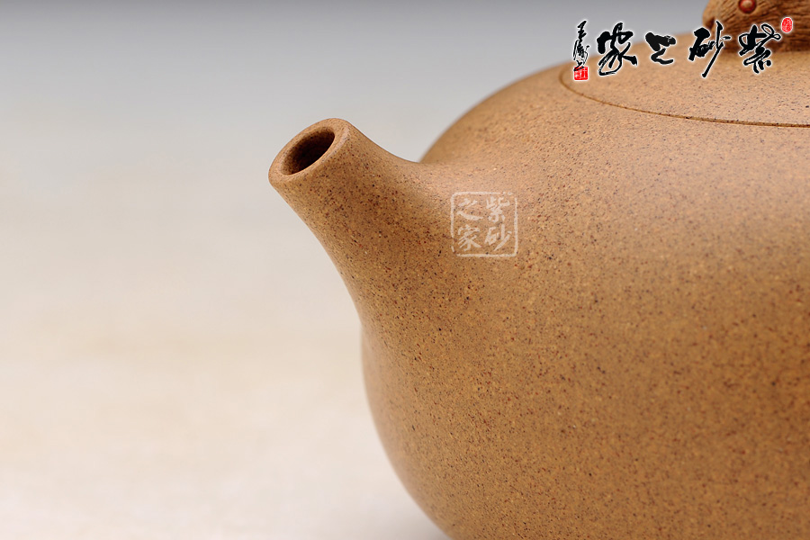 泥性:感甜嫩綿密,質(zhì)堅(jiān)而溫潤,呈近田黃色調(diào),為江蘇宜興趙莊山系朱泥礦~黃石黃之共生礦,經(jīng)挑揀練製而成,因含鐵量只達(dá)6%左右,致陶之后呈“金田黃色”。